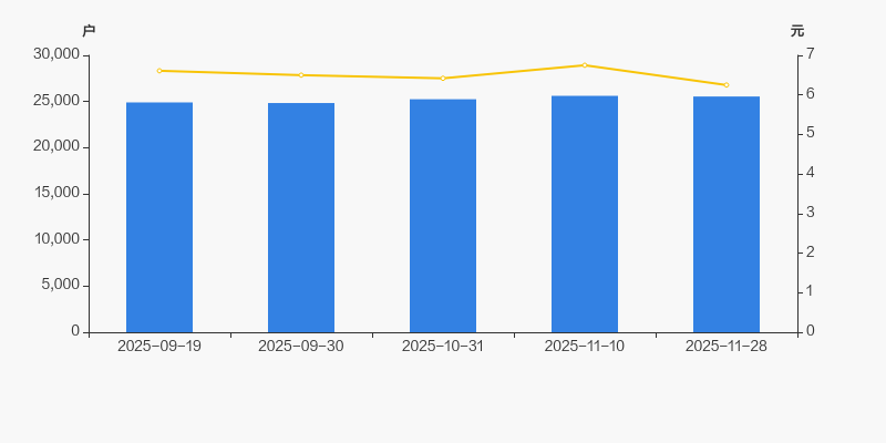 2025年9月19日至今,公司股东户数有所增长,区间涨幅为2.57%。2025年9月19日至2025年11月28日区间股价下降5.45%。