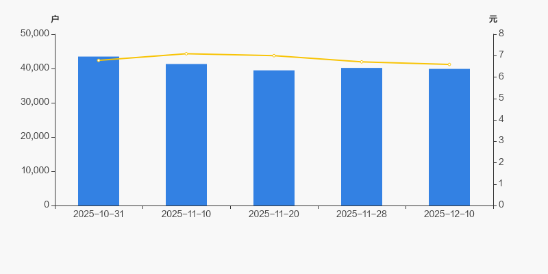 2025年10月31日至今,公司股东户数有所下降,区间跌幅为8.27%。2025年10月31日至2025年12月10日区间股价下降2.80%。