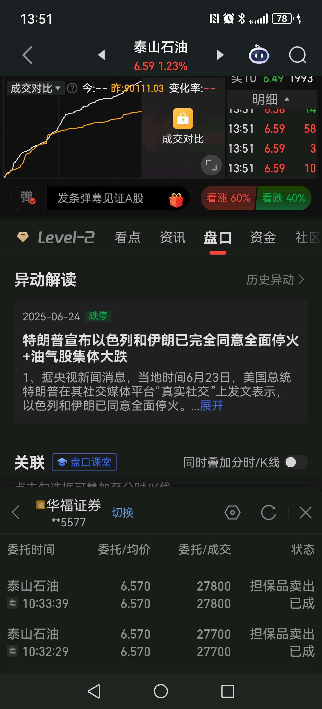 $泰山石油(SZ000554)$ 6.57已卖留下的等S