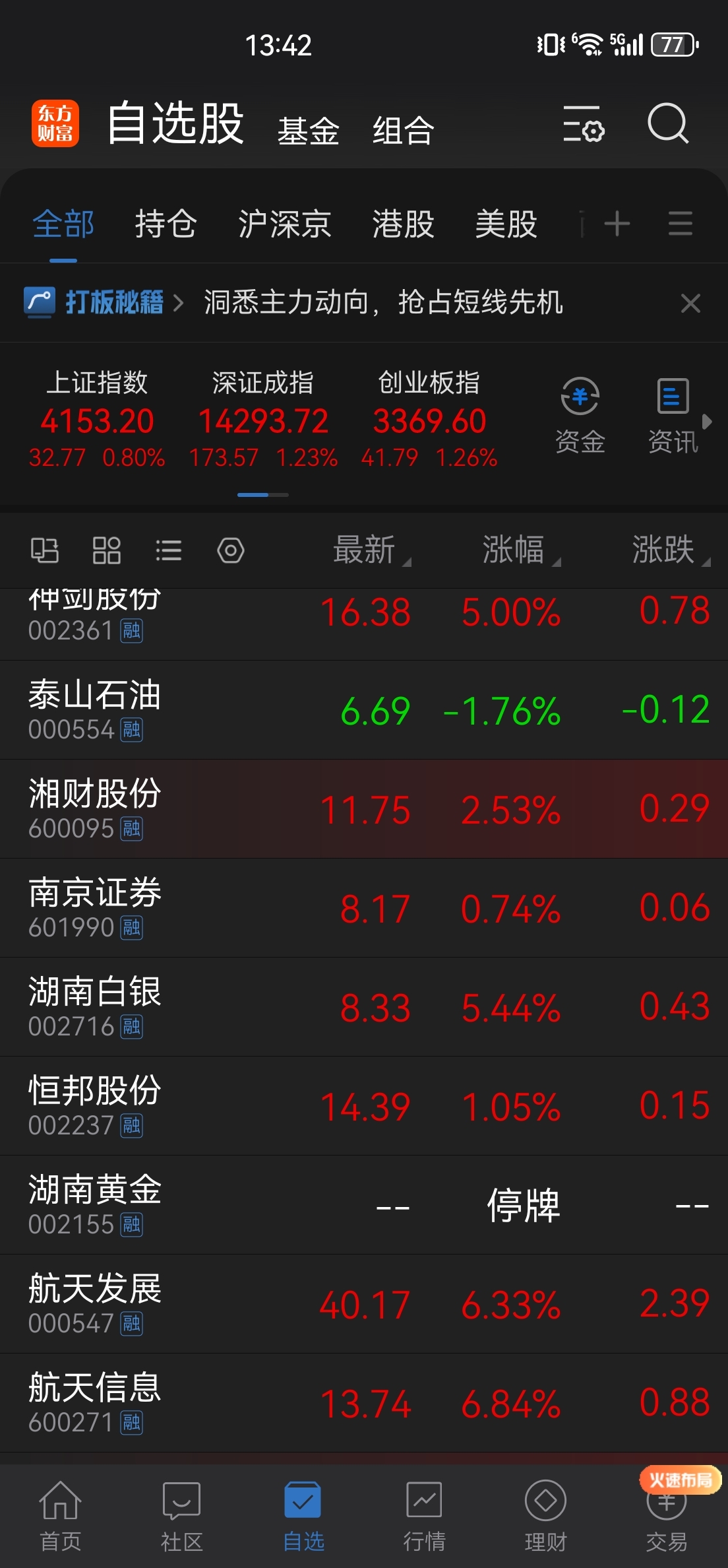 自选股,热度航天不敢追,其它全争气。倒霉听什么大新闻重组,买了你这神仙股。