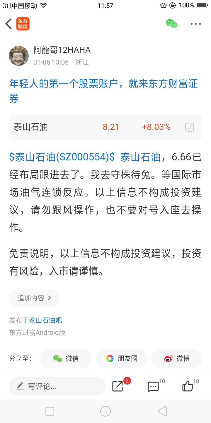 $泰山石油(SZ000554)$ 泰山石油,泰山石敢当。你真强呀,你真强呀,你真强呀!看来要涨停喽。我前些日子布局潜伏进去的点位6.66。六六六大顺。加油,加油,加油!赚钱了,赚钱了,赚钱喽!以上信息不构成投资建议,请勿跟风操作,请勿跟风操作,请勿跟风操作。请大家不要去跟风操作。