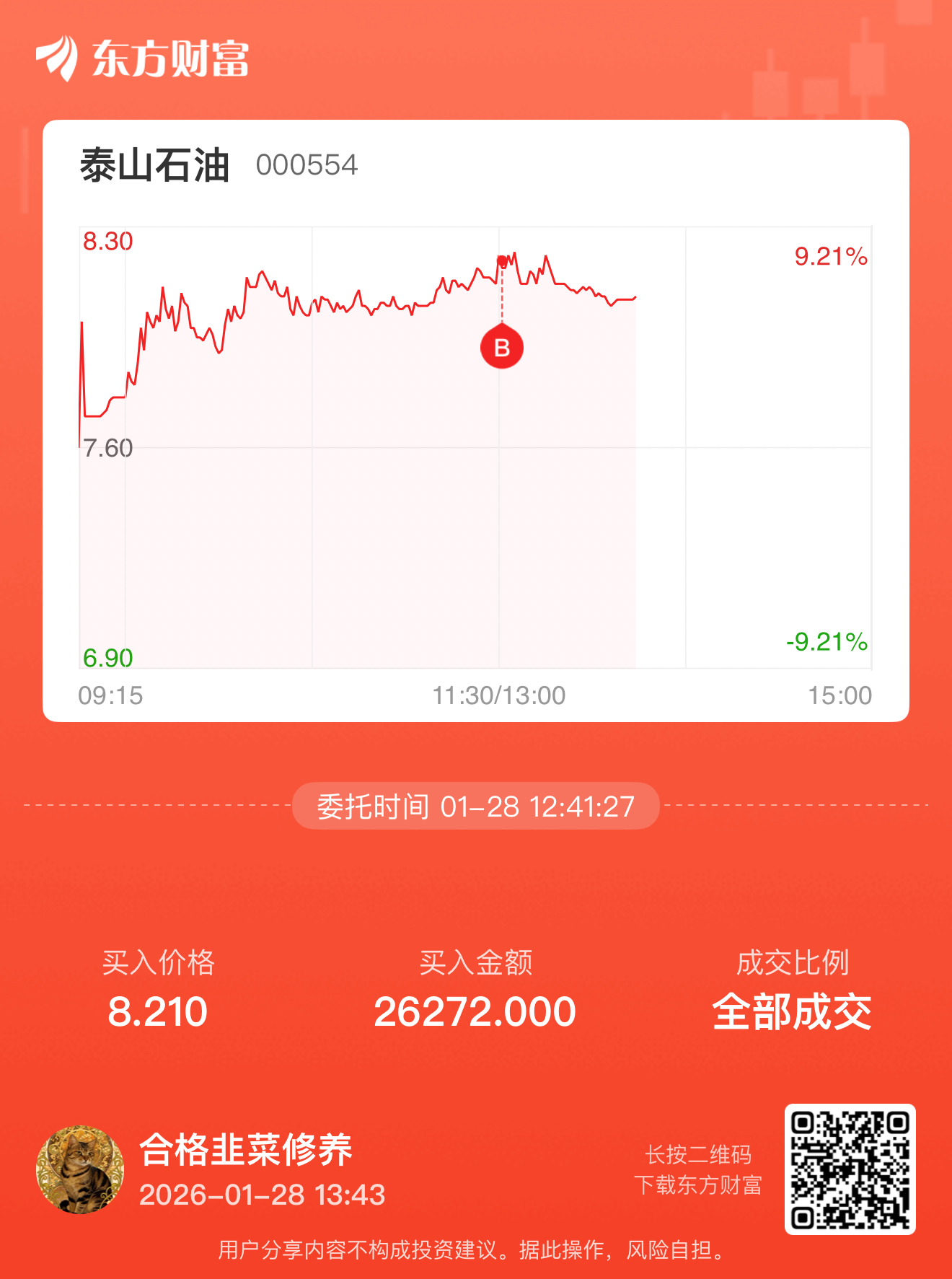 温馨提示: 1.根据《证券法》规定,禁止编造、传播虚假信息或者误导性信息,扰乱证券市场;2.用户在本社区发表的所有资料、言论等仅代表个人观点,与本网站立场无关,不对您构成任何投资建议。用户应基于自己的独立判断,自行决定证券投资并承担相应风险。《东方财富社区管理规定》