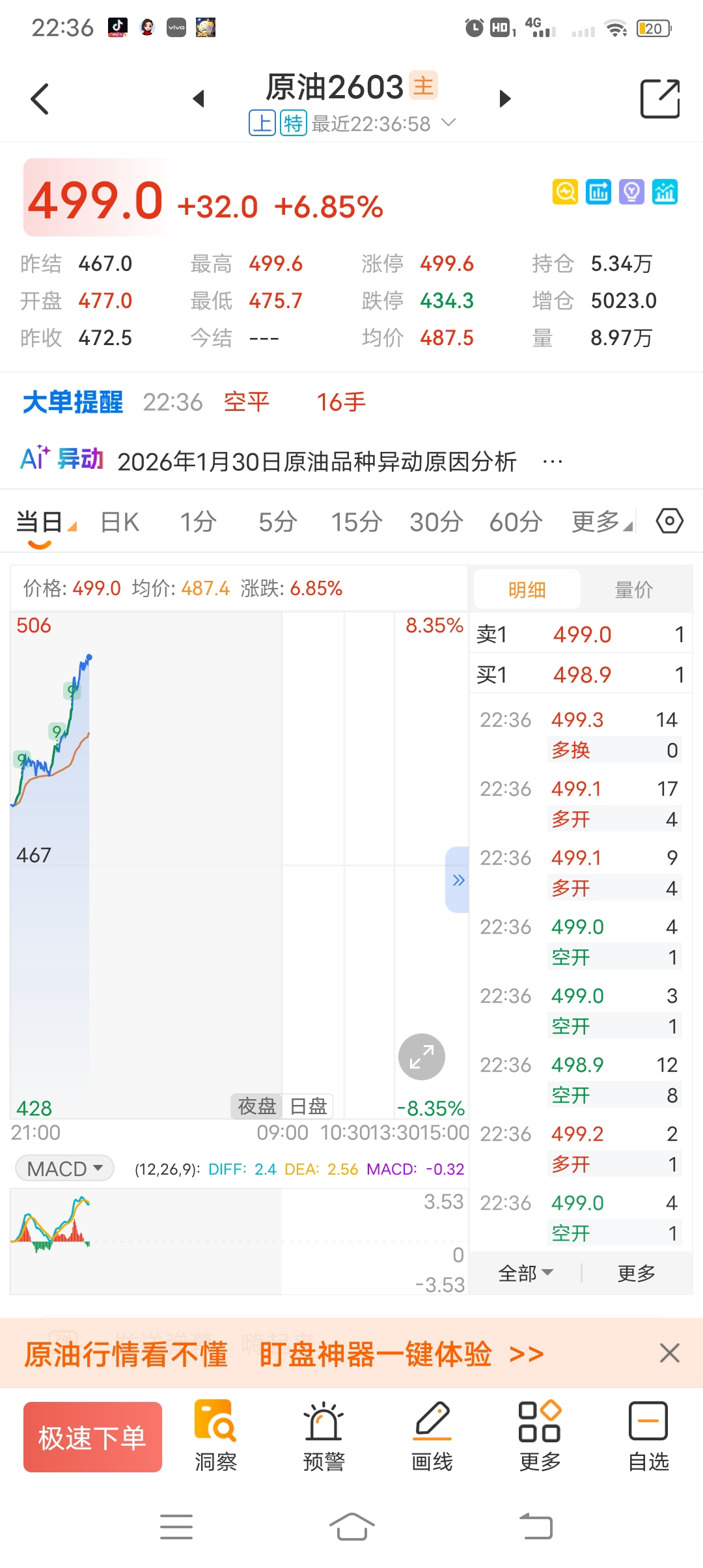 $泰山石油(SZ000554)$ 期货原油大涨,明天应该会涨