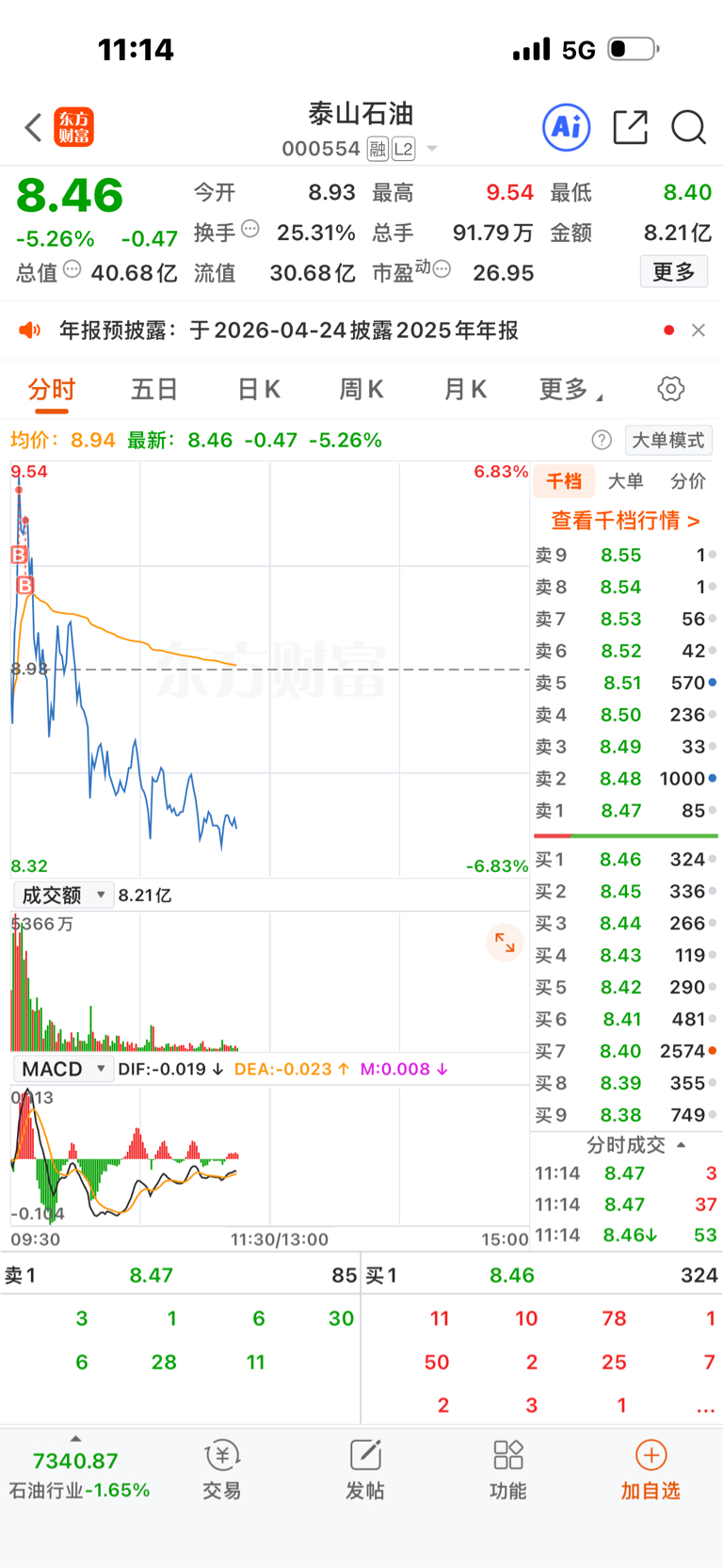 $泰山石油(SZ000554)$ 谁有我惨刚进来10个点