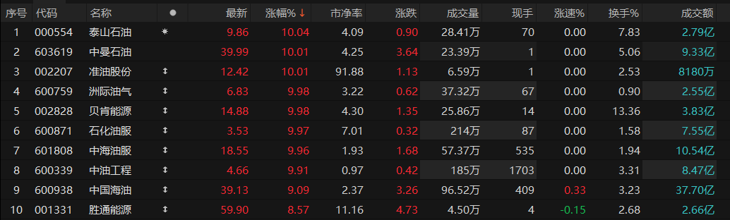 早盘石油石化板块大幅高开,泰山石油、中曼石油、准油股份等涨停。