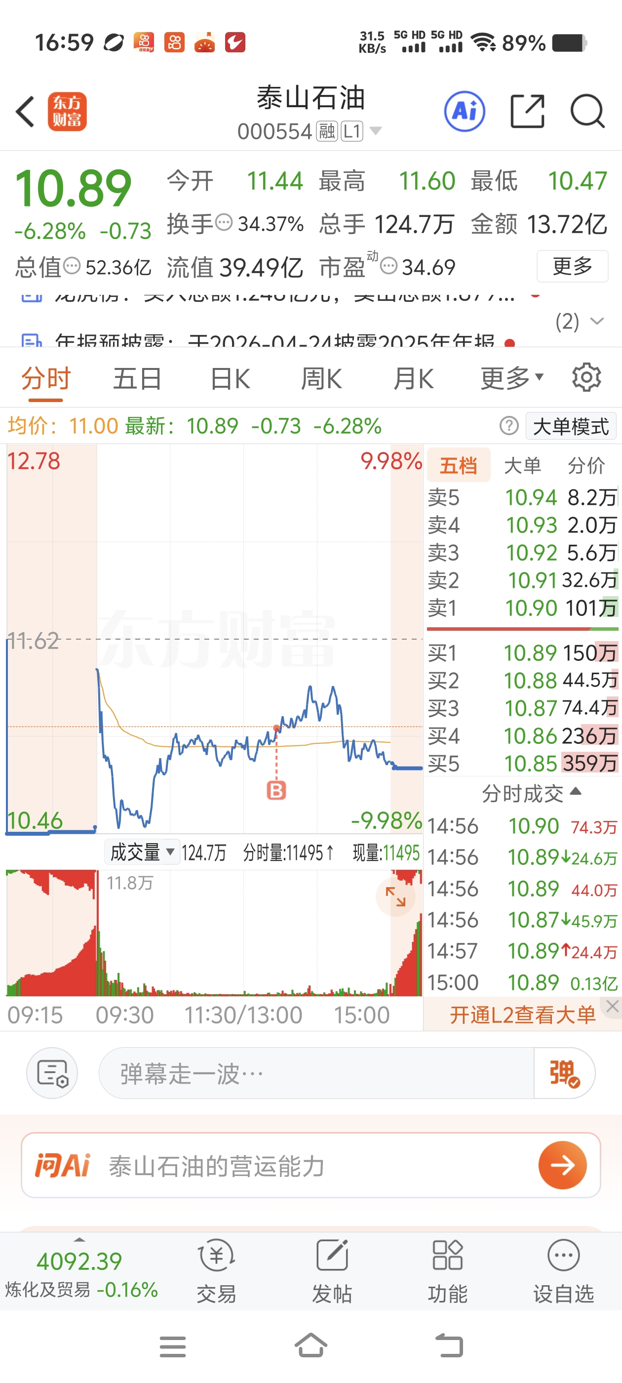 $泰山石油(SZ000554)$ 以为你要起来了,谁知道你是为了趴得更低