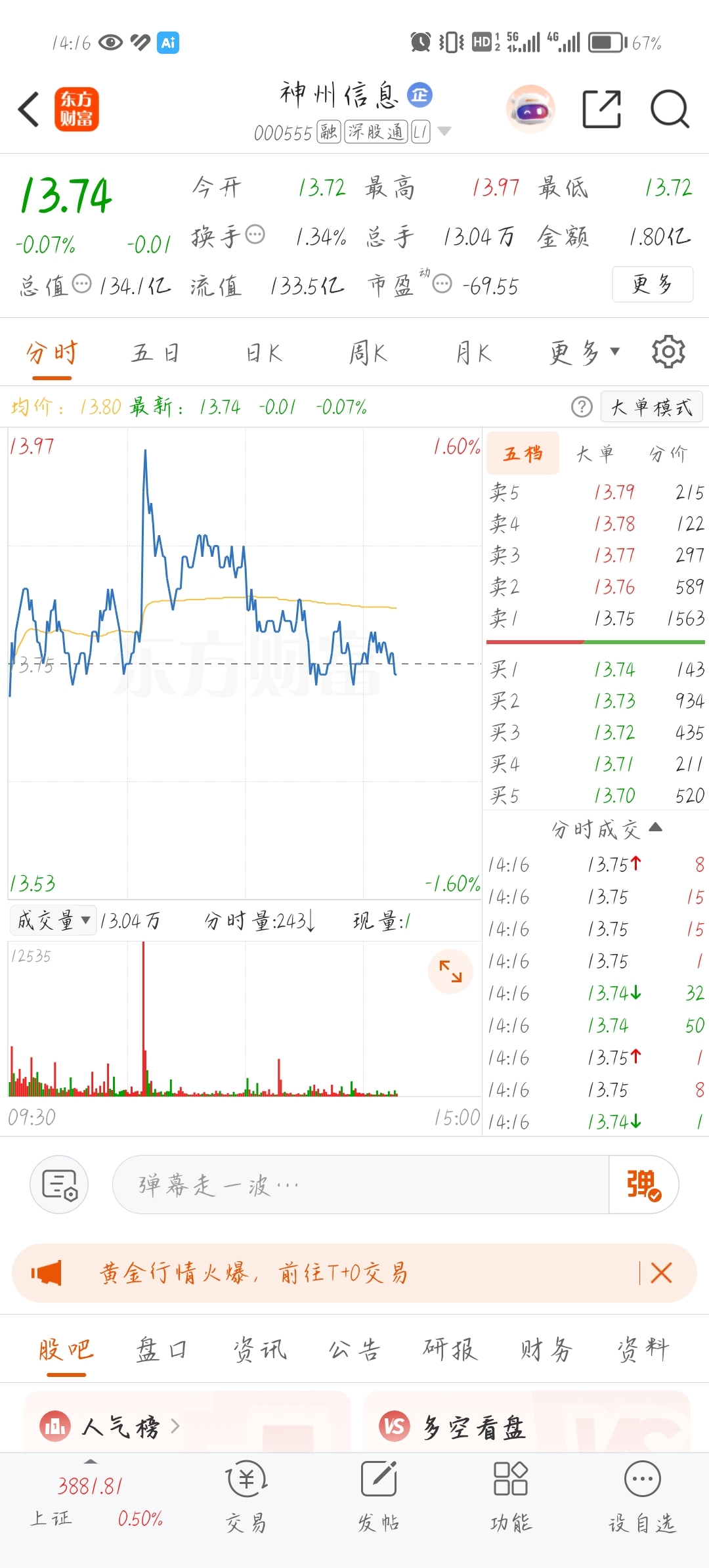 $神州信息(SZ000555)$ 买盘枯竭,今天不绿,谢天谢地