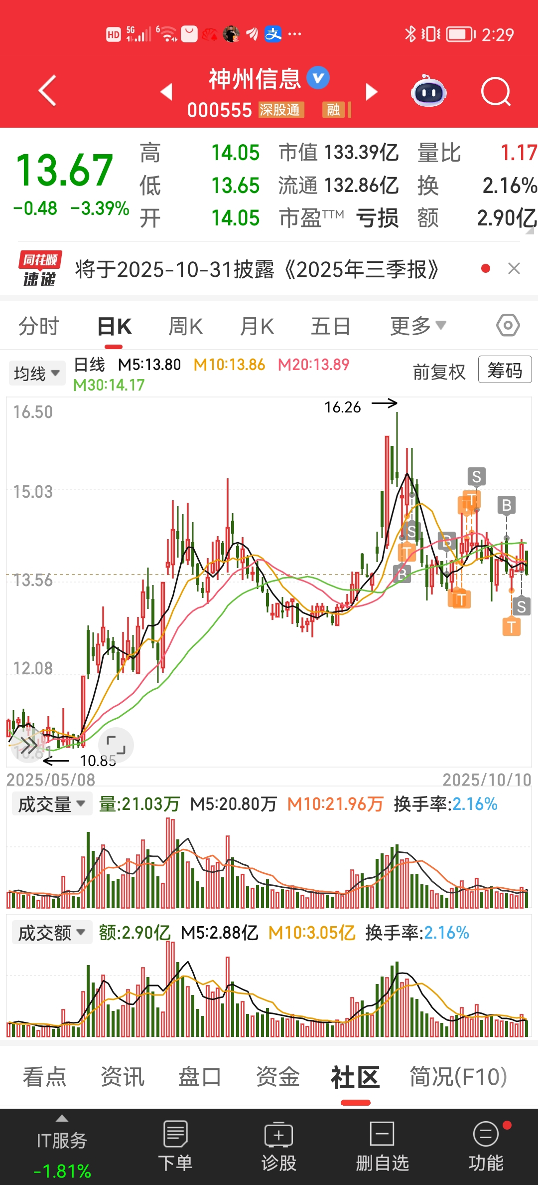 $神州信息(SZ000555)$ 我每一次都是全仓操作,神州是赚钱的,在别地方亏了,总觉得这里不是买点,错就错吧,要是周末来个消息,就被甩下车了