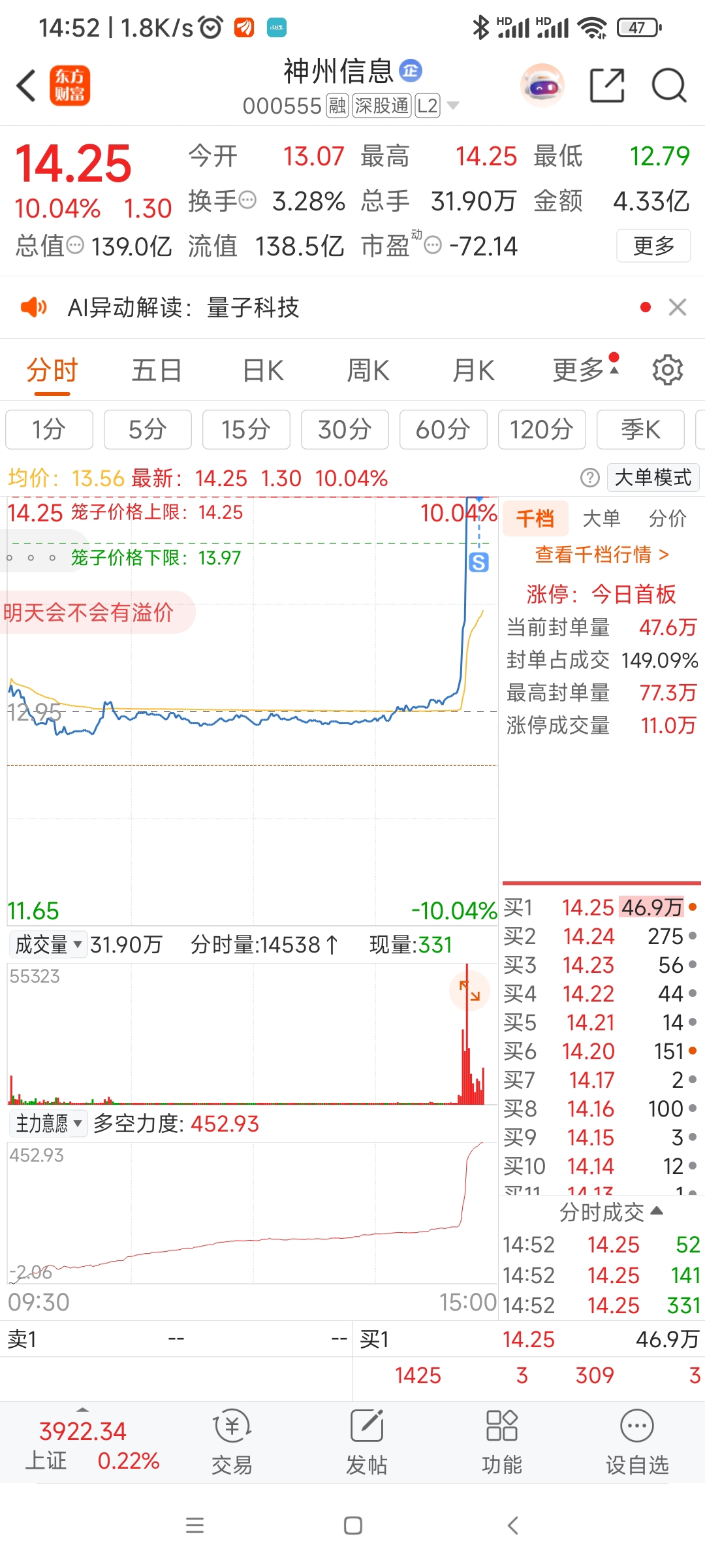 $神州信息(SZ000555)$ 清仓了,休息几天再说,最近太难受了