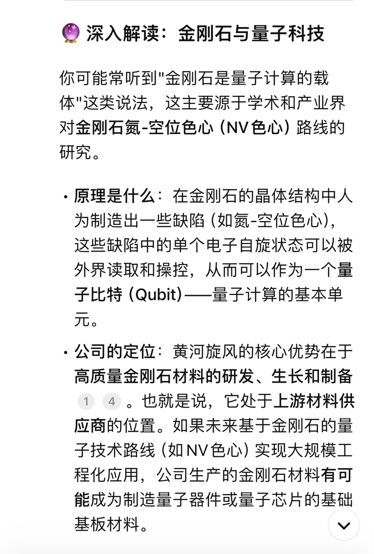 所以,简单来说:人造钻石为量子计算提供了一条可能的技术路径和关键材料。
