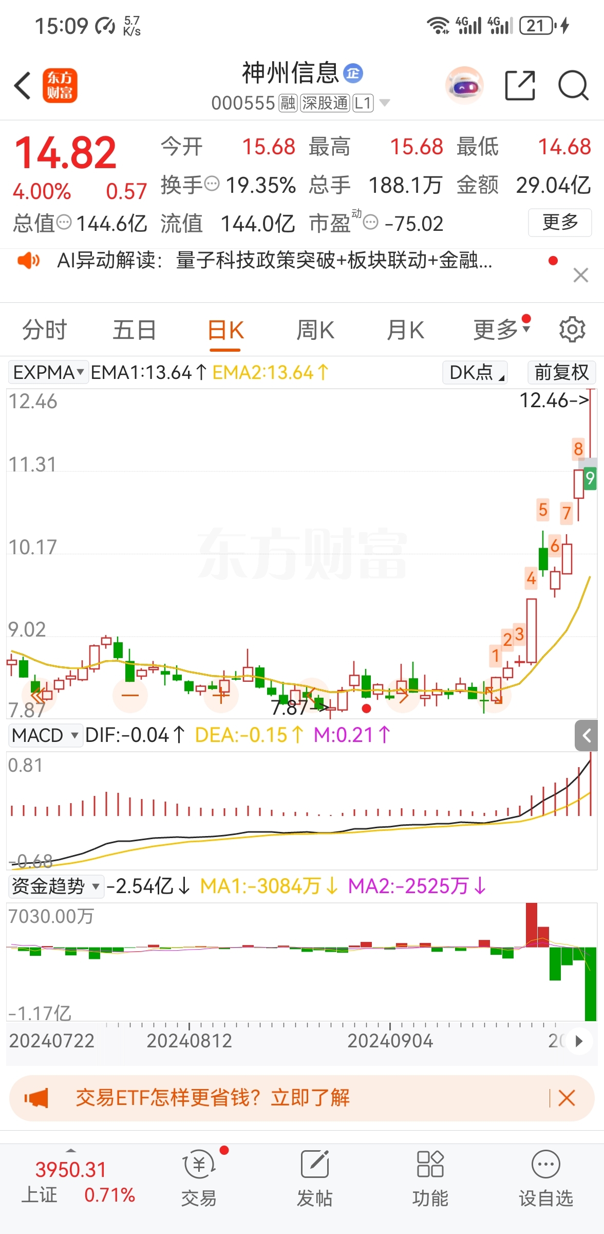 $神州信息(SZ000555)$ 希望量化能复制下走势。