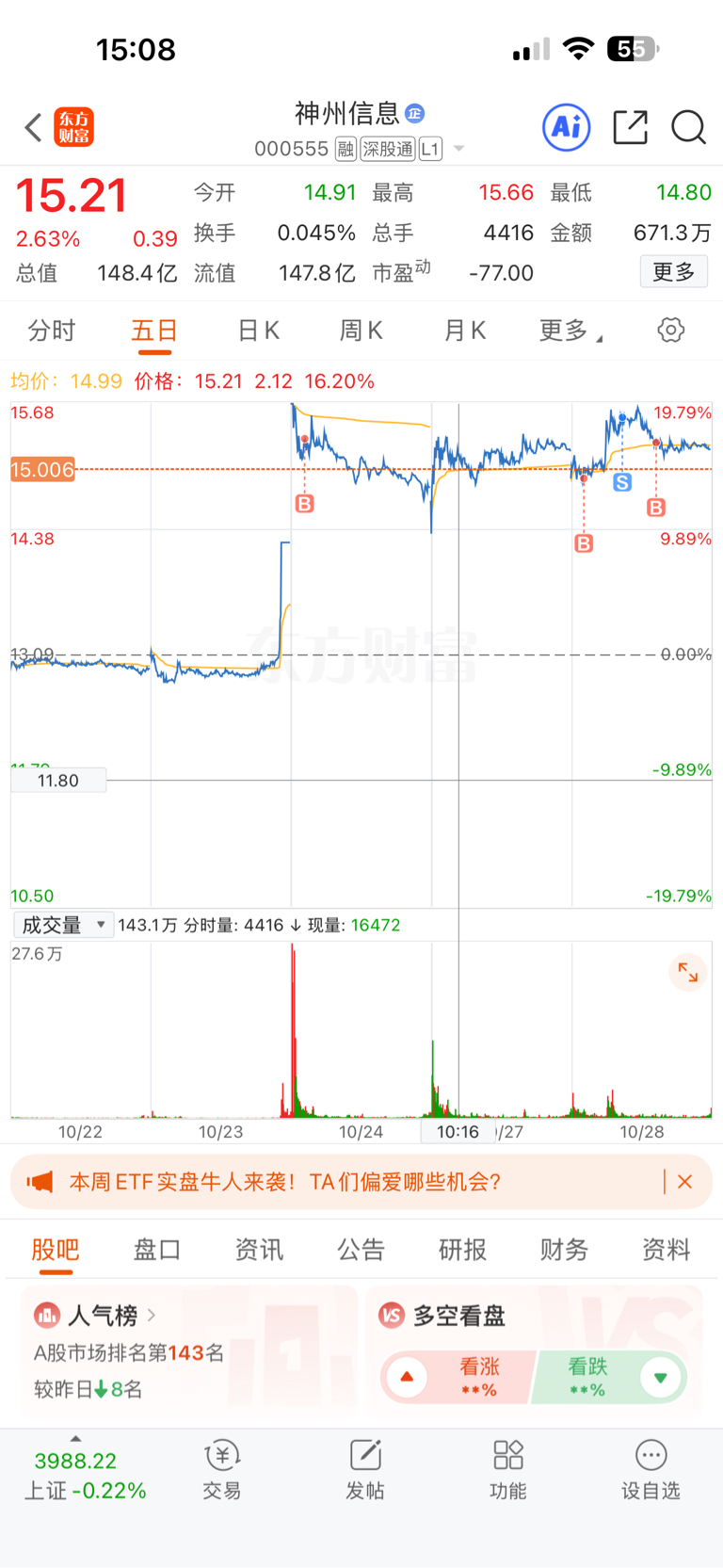 $神州信息(SZ000555)$ 做t 降成本