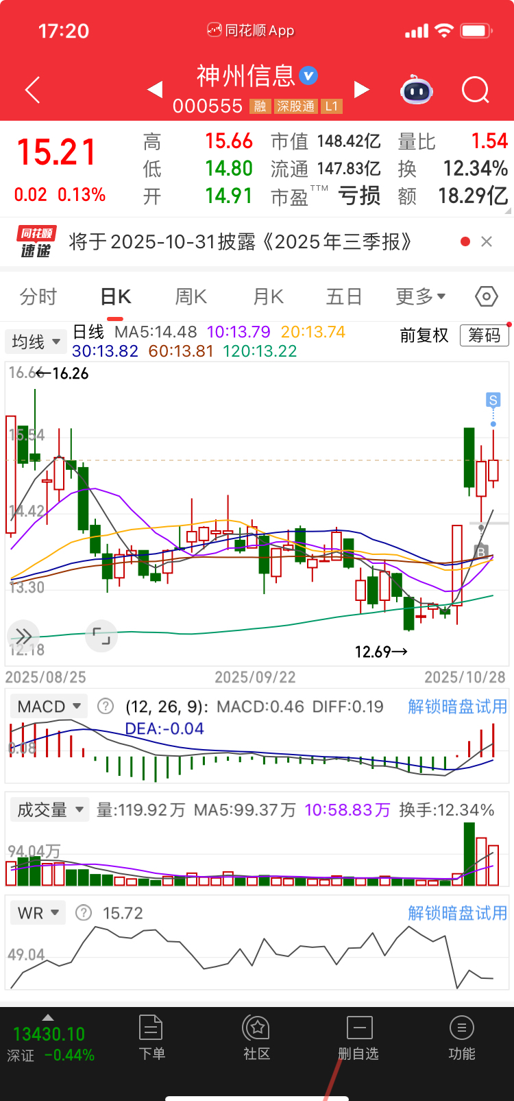 $神州信息(SZ000555)$ 昨天进来参与一下,今天走了