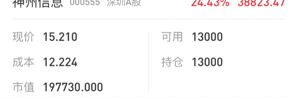 $神州信息(SZ000555)$ 这股的潜力不是格尔软件所能比拟的,无论营收,概念、股本容量,是超大资金战场,目前以初本建立底仓,后续将会打半仓以上