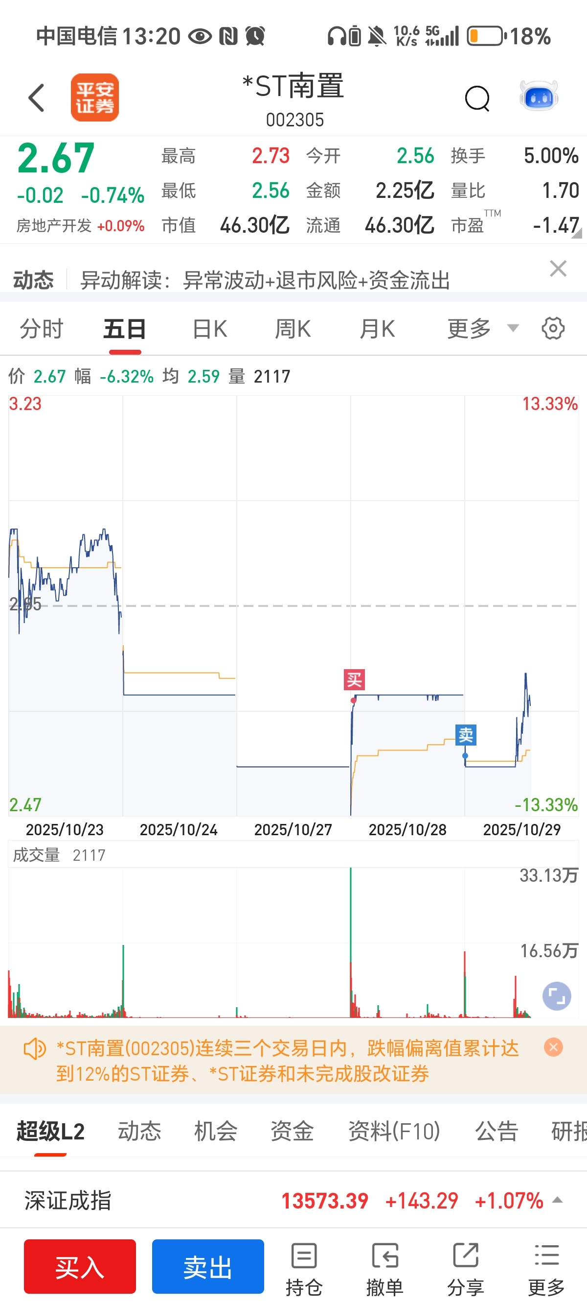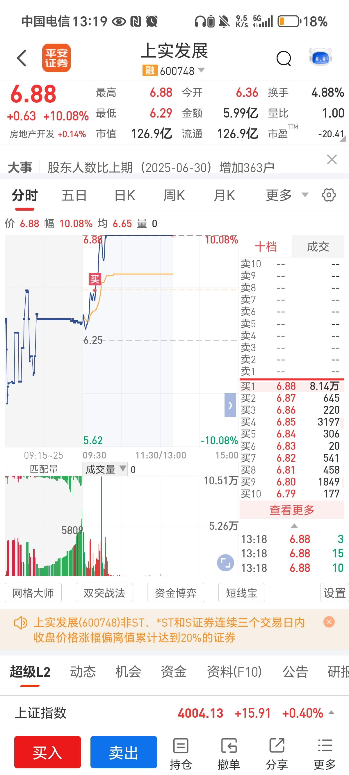 今天出st南置,进神州信息和上实发展,又是两个涨停板。昨天进南置今天直接五个点大