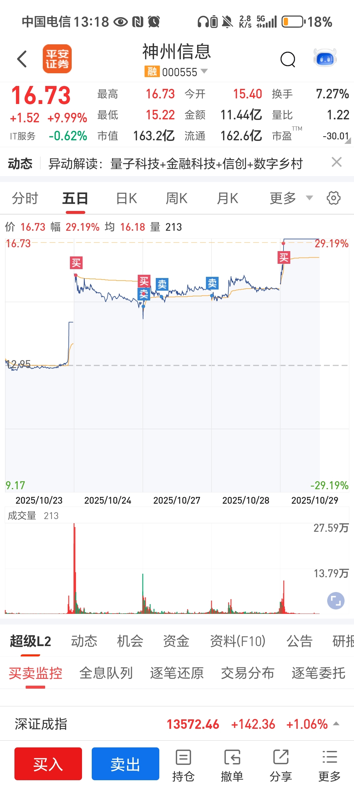 $神州信息(SZ000555)$ 今天出st南置,进神州信息和上实发展,又是两个涨停板。昨天进南置今天直接五个点大面。神州信息前几天打二板吃面,做了两次t,昨天割了决定关注等着打板,没想到今天就涨停了,还有白银有色买了两次都亏,被上了一课,以后遇到这种的不拿先手了,直接打板。