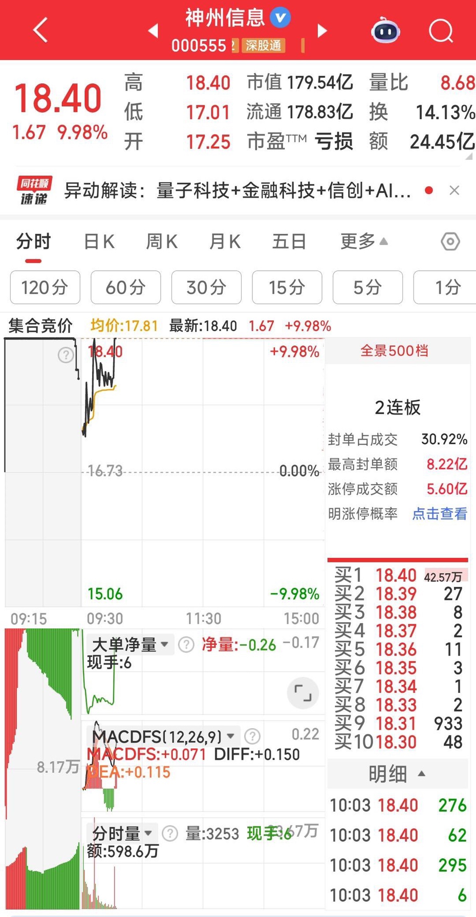 恭喜神州信息继康盛股份后,又封涨停!