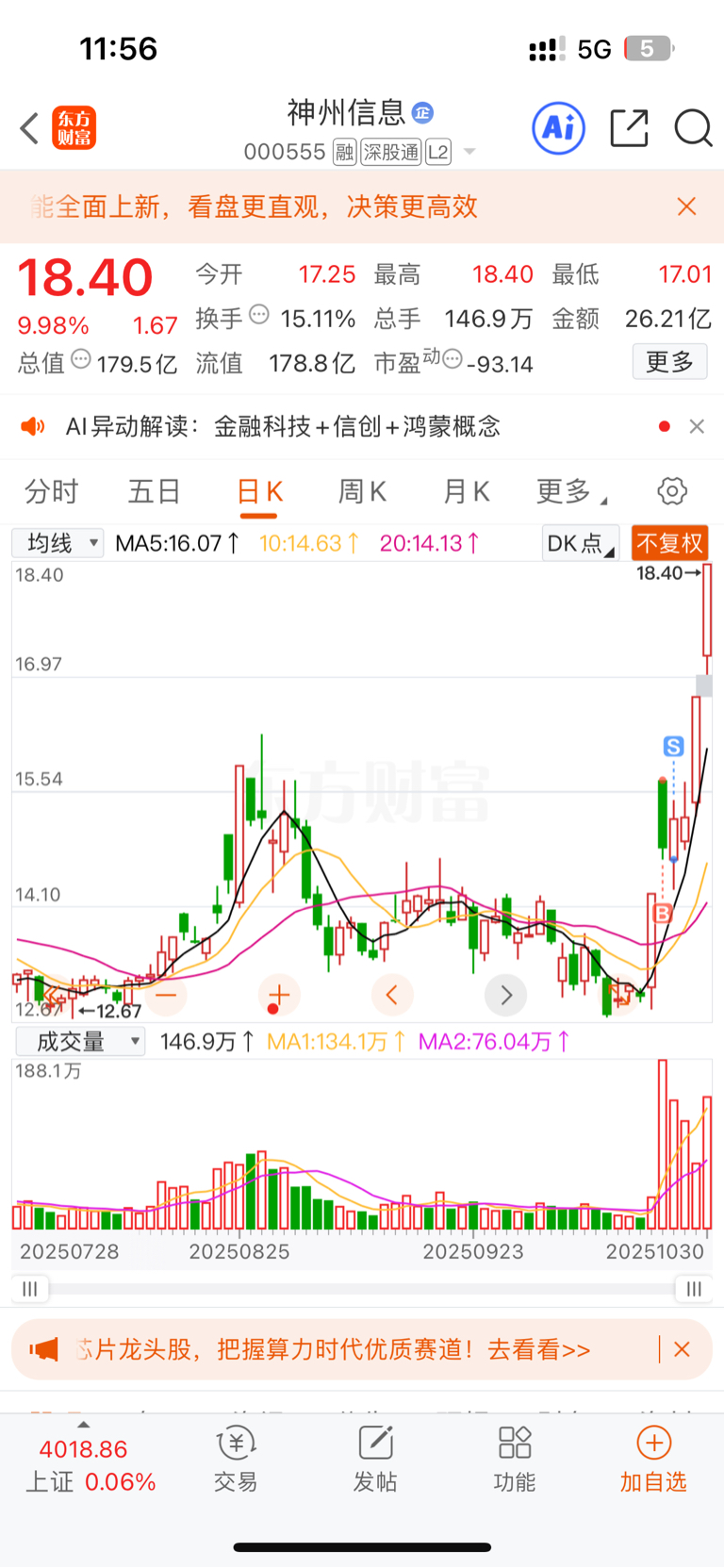 $神州信息(SZ000555)$ 牲畜啊