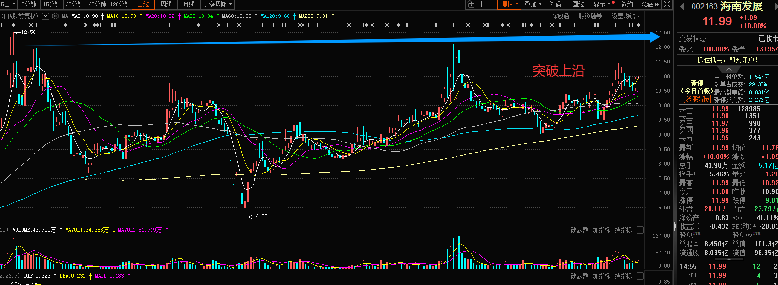 海南发展:海南发展主要是炒作海南封关,有土地,税方面的优势。技术走势来说,海南发展经过几个月的震荡洗盘,已经很充分,如果今天竞价有其他海南个股强势,也可以竞价低吸海南发展。