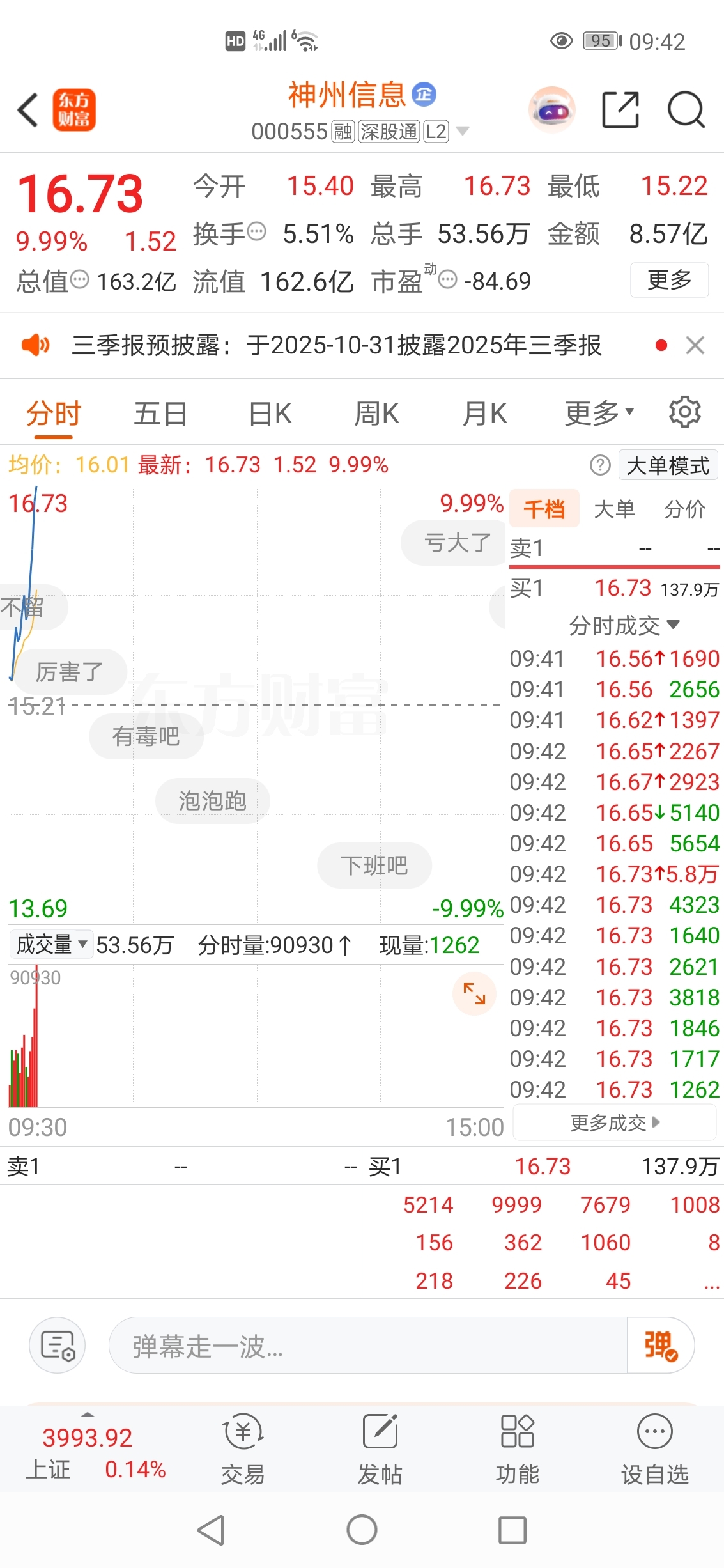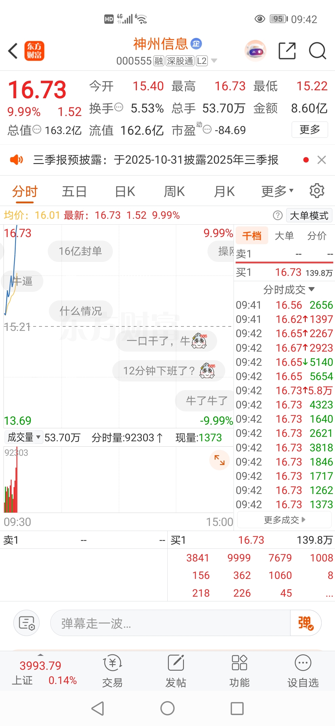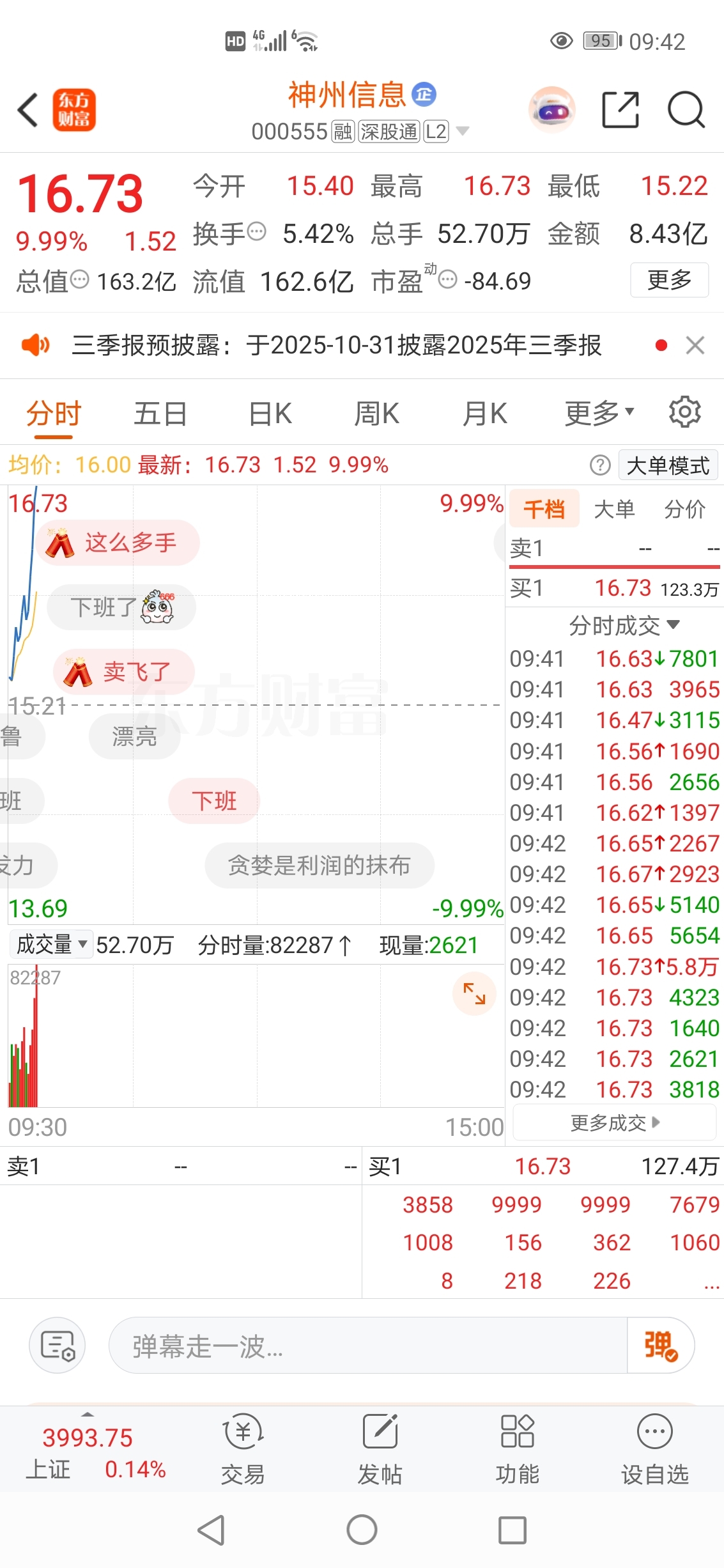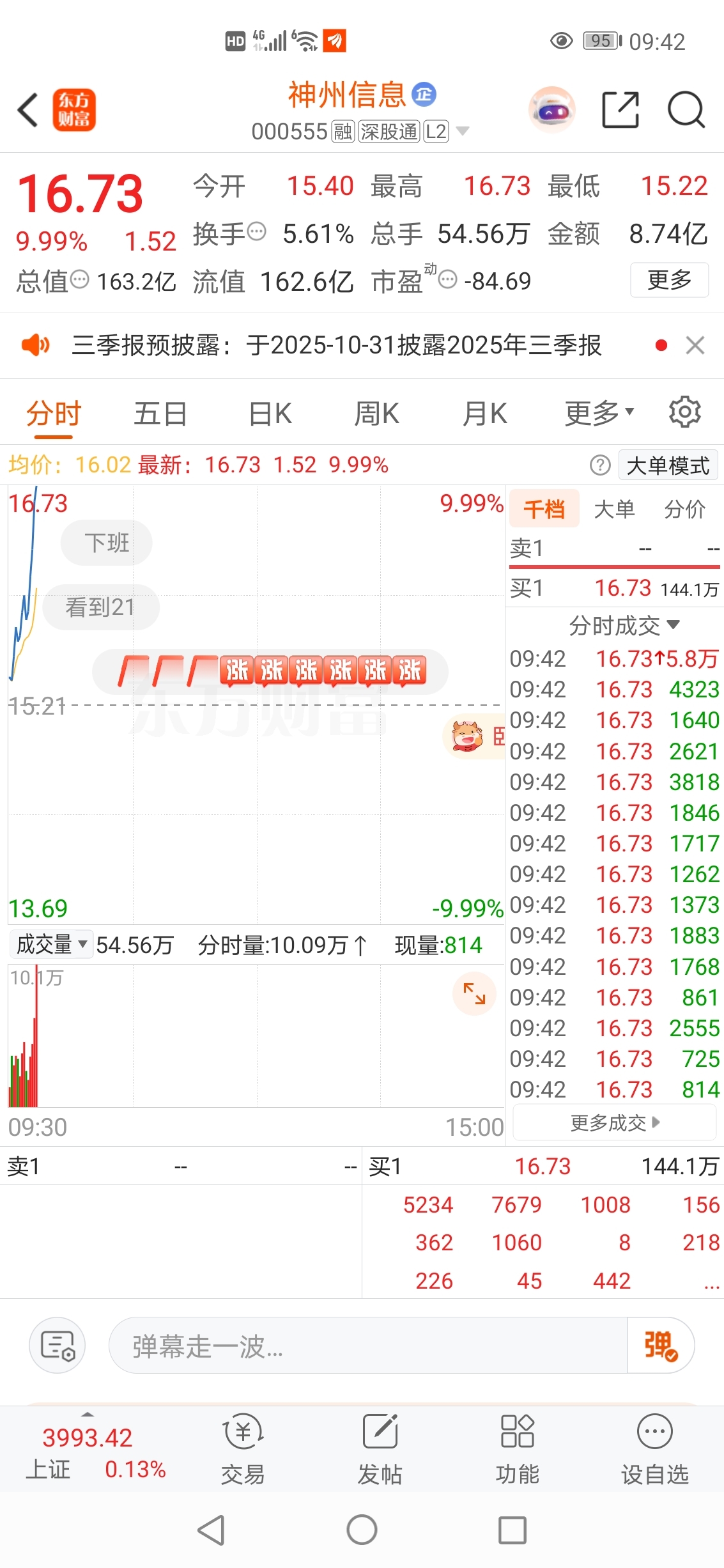 2025年10月29日,记录神州信息封涨停板的精彩瞬间。