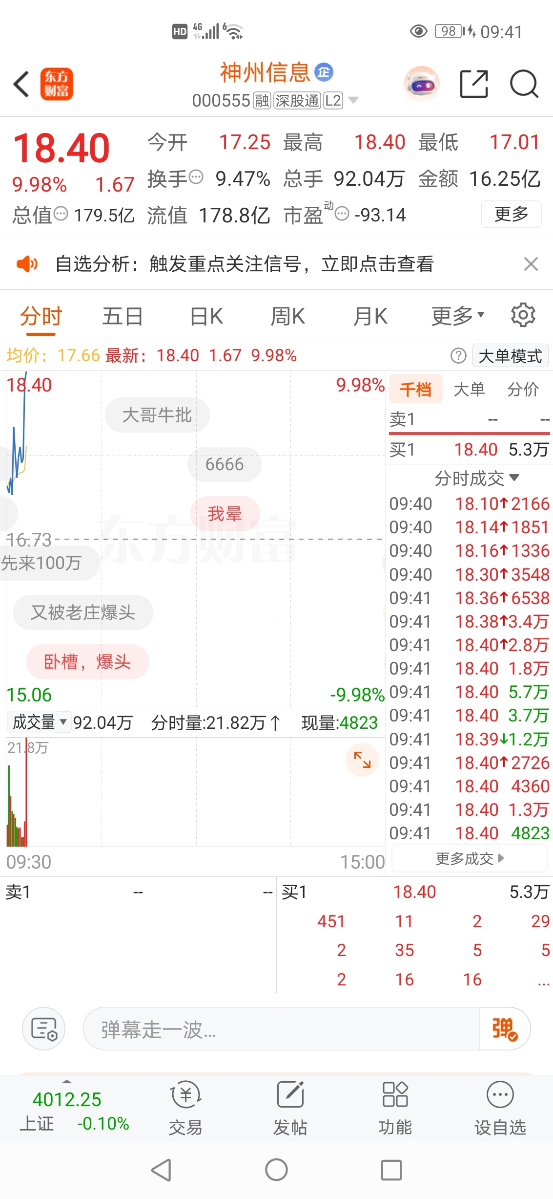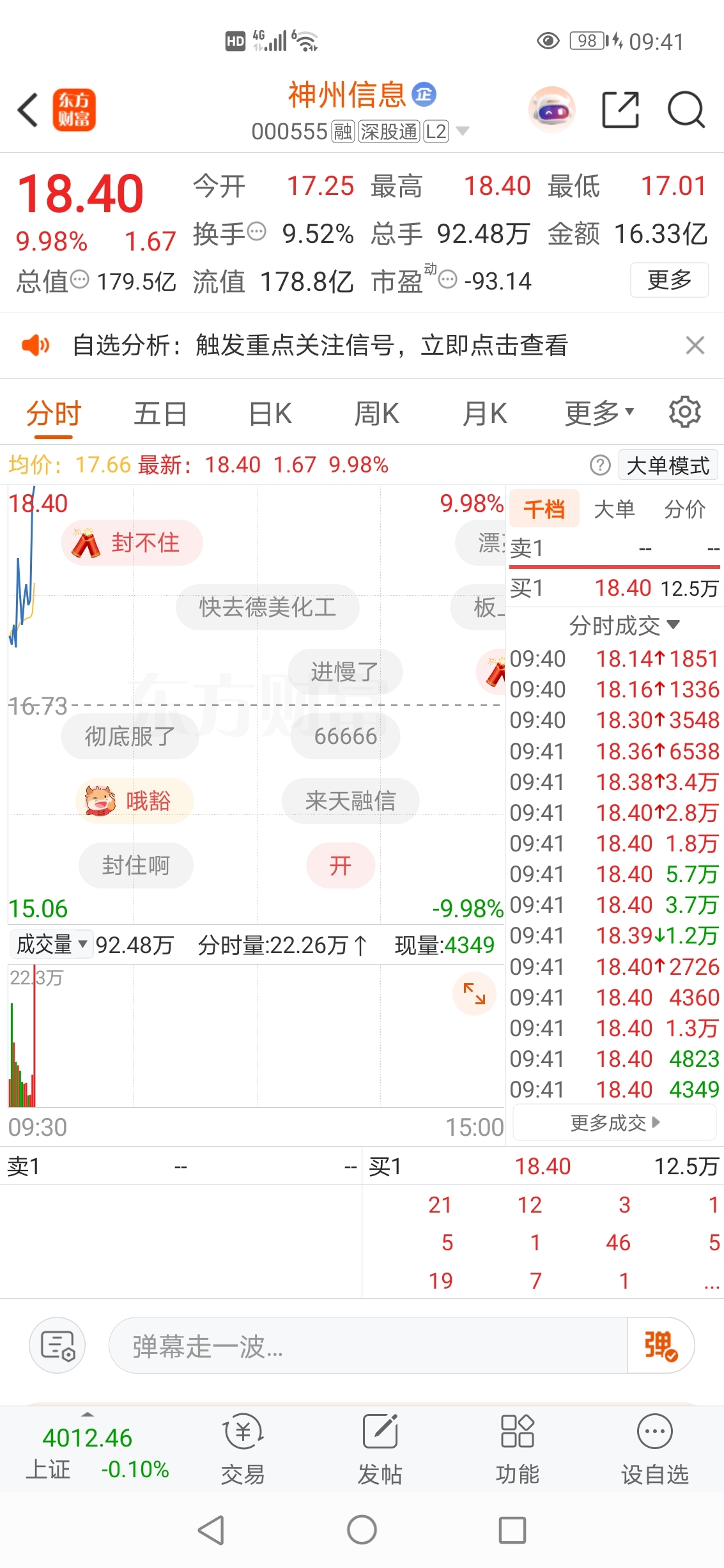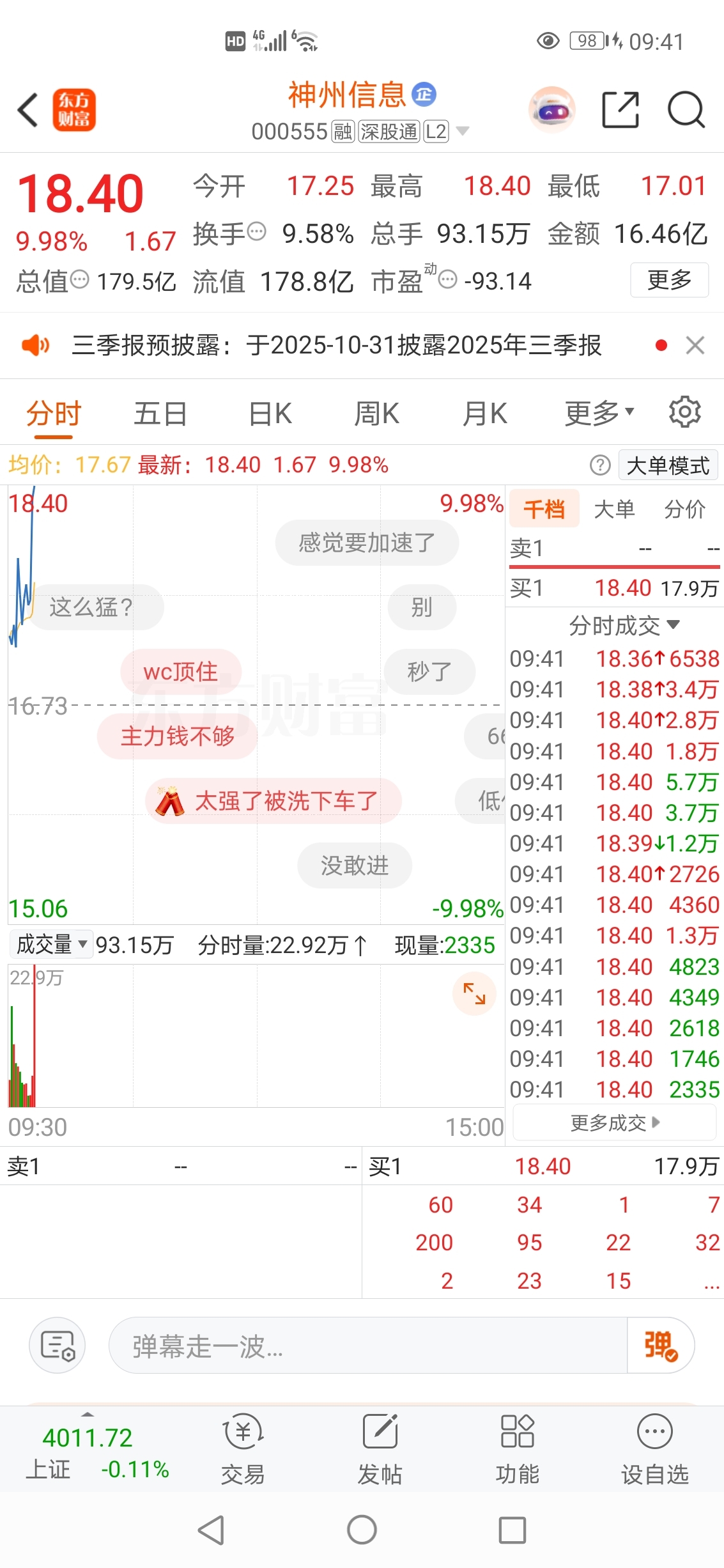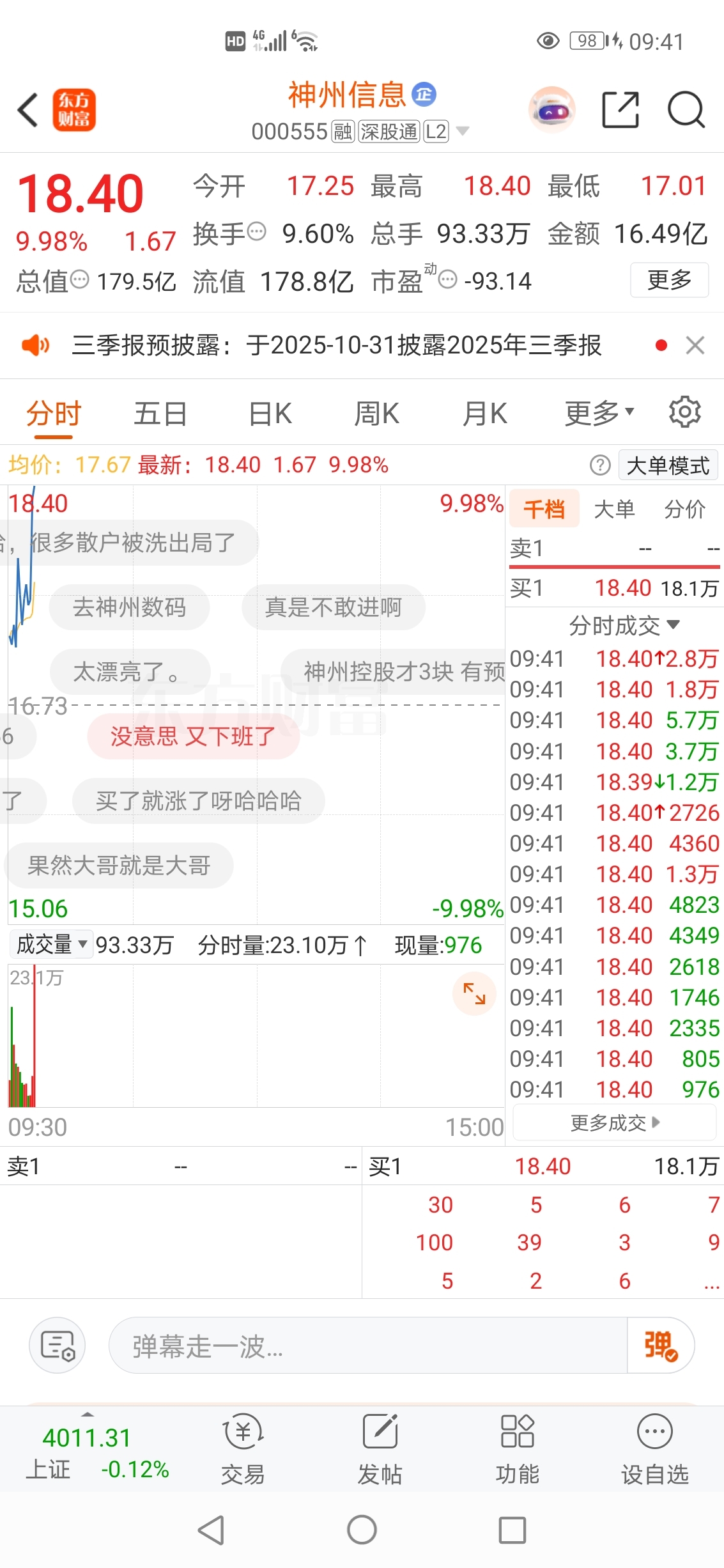 2025-10-30记录神州信息封涨停板精彩瞬间