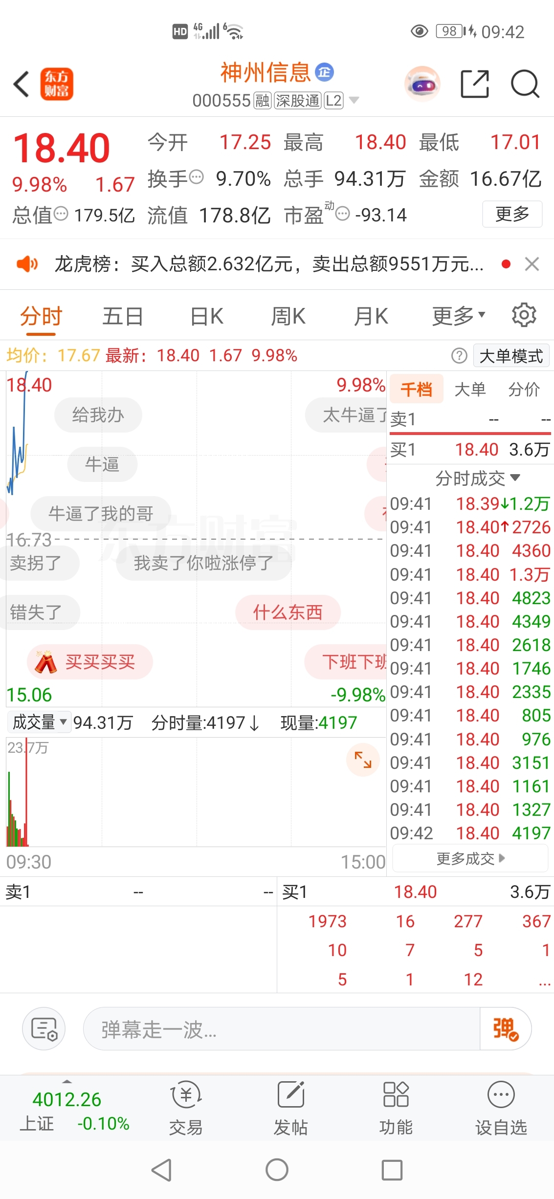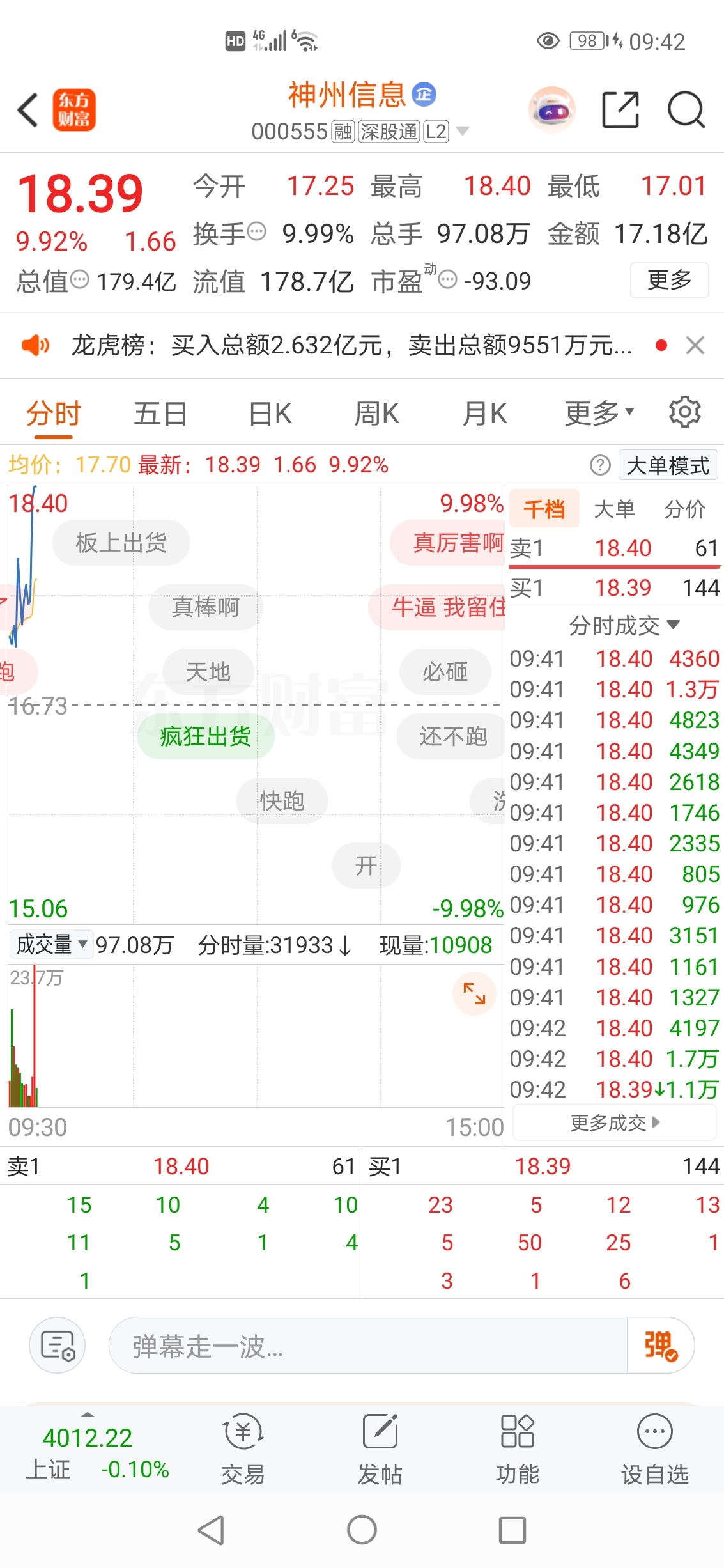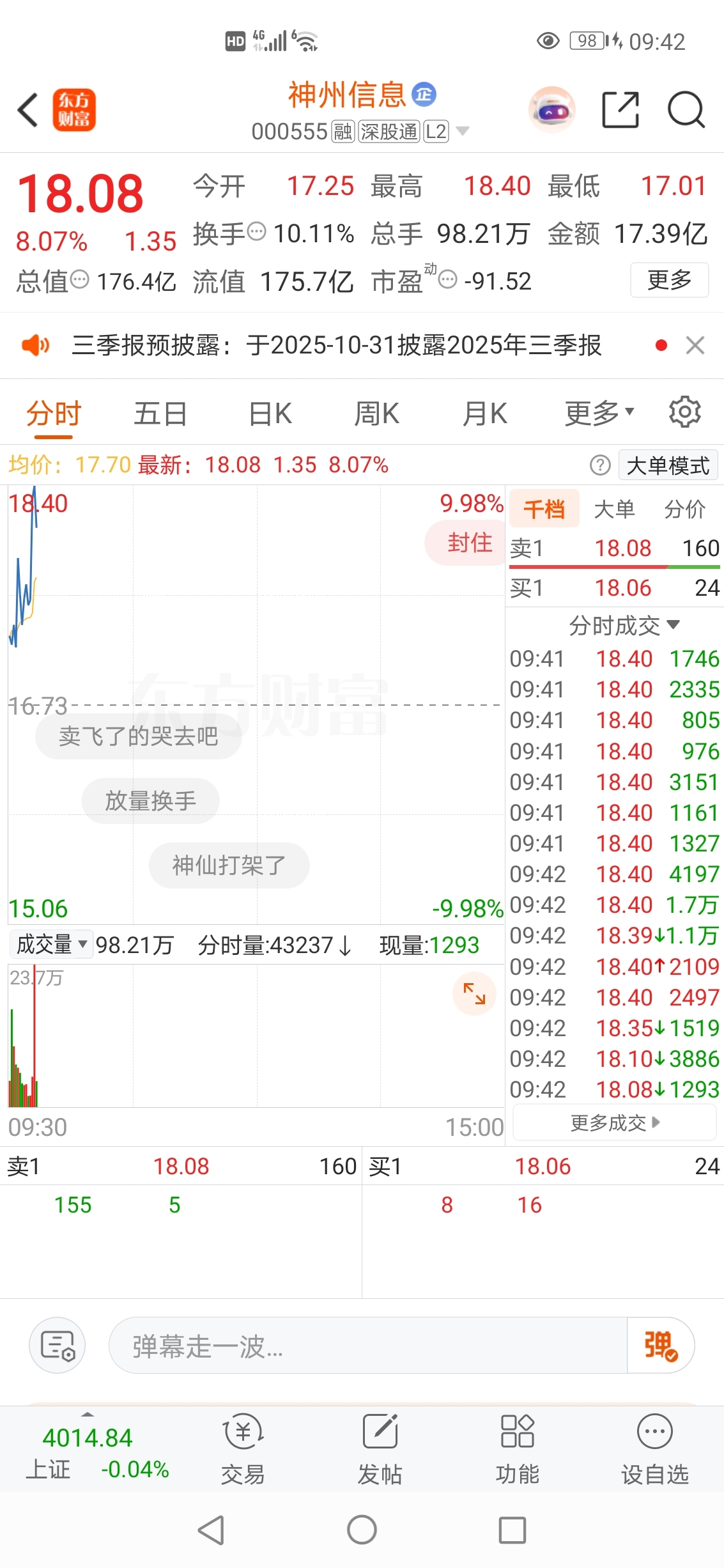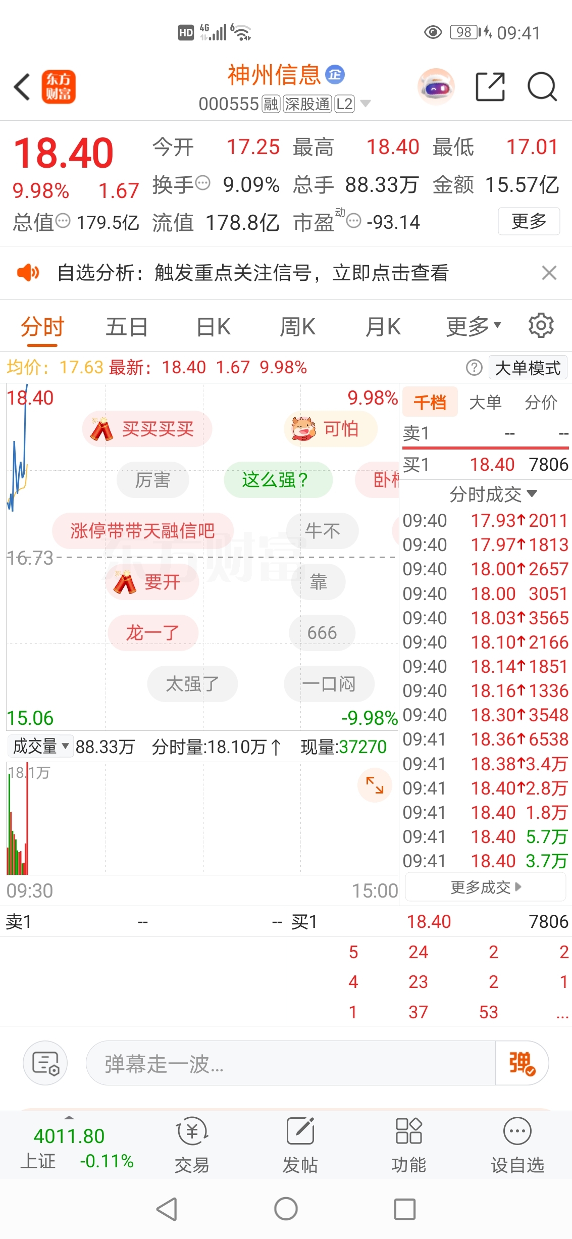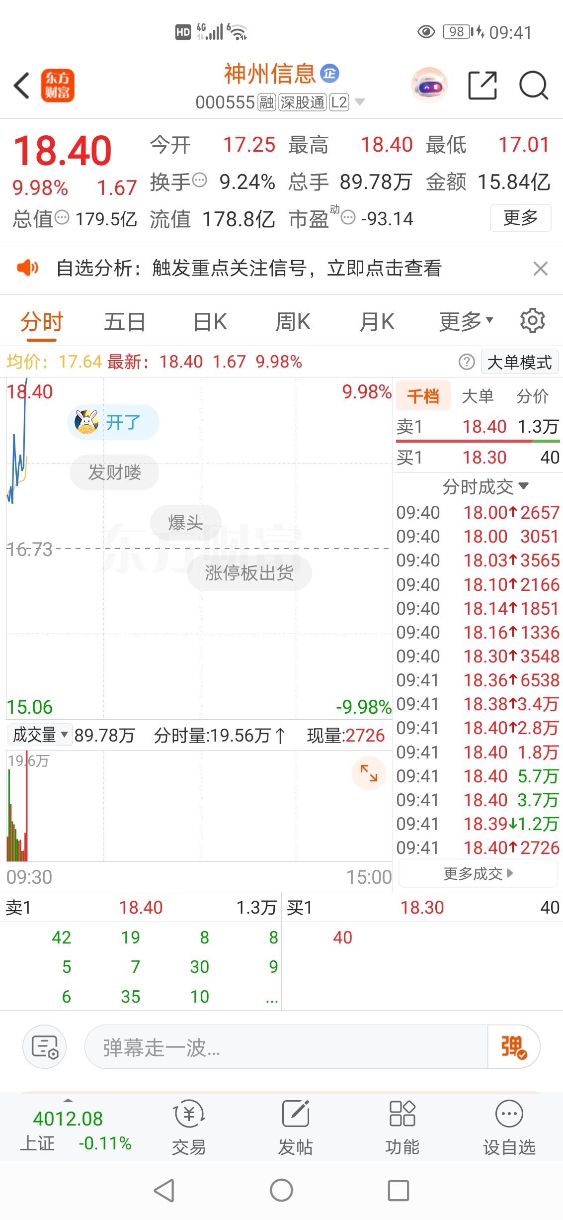 2025-10-30记录神州信息封涨停板精彩瞬间