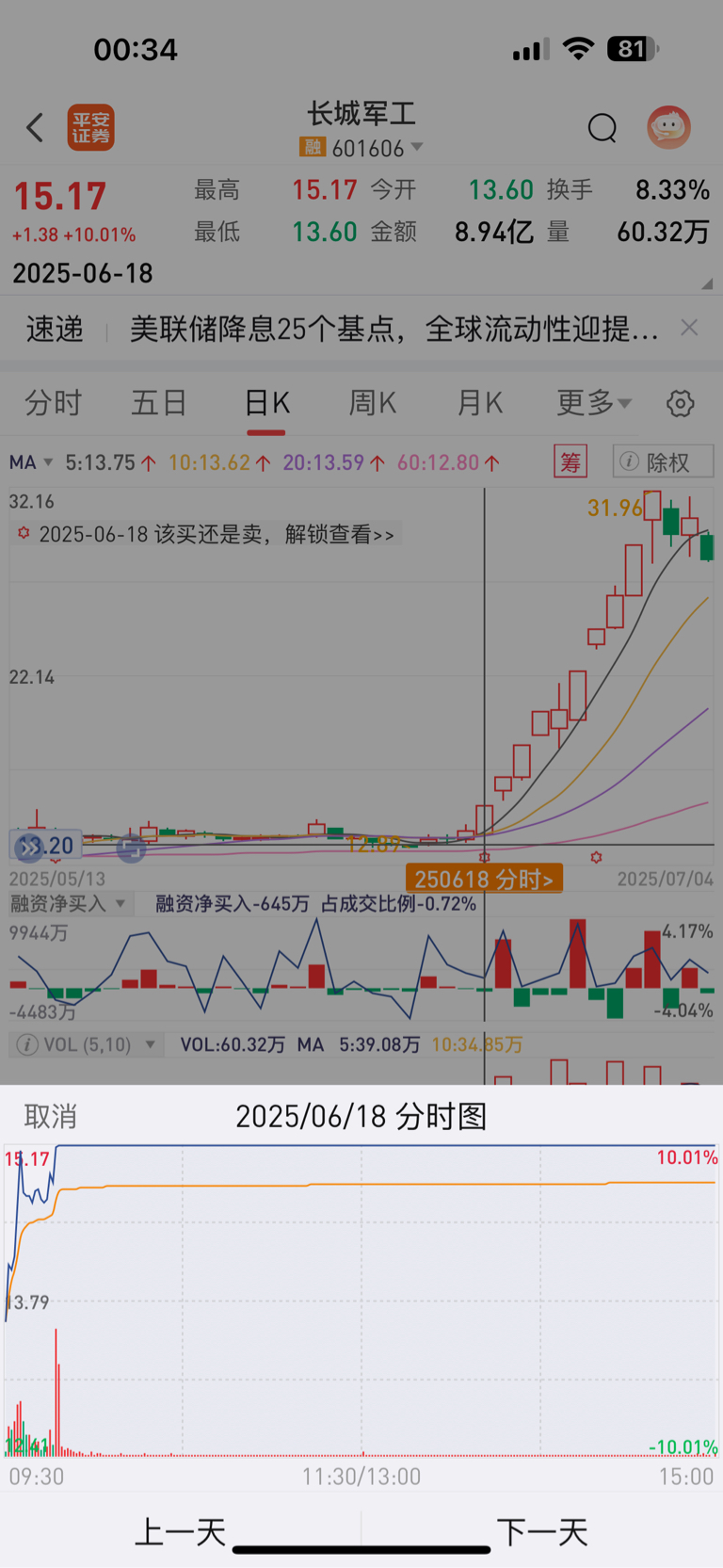 跟6.18日的长城军工走势好像哦