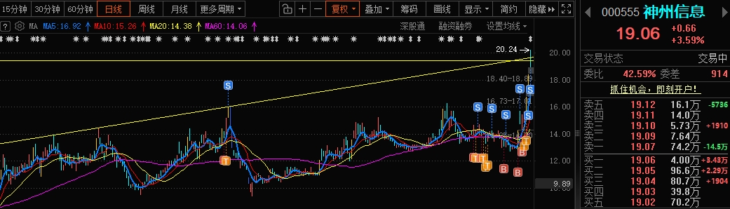 $神州信息(SZ000555)$ 走了,到了目标位。等调整完再进。下一波冲击30元,加油!