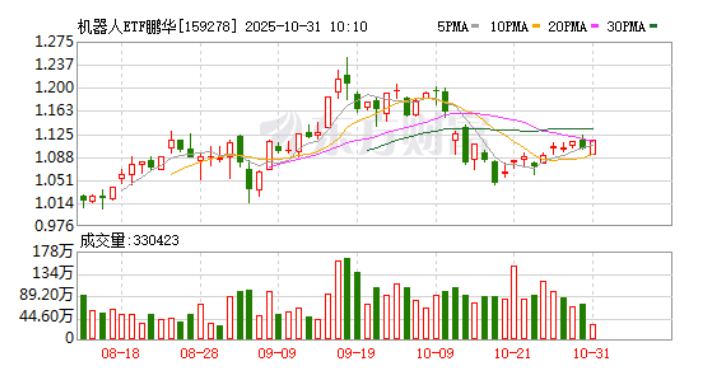 我加仓的机器人ETF鹏华(159278)今天挺猛的,光头光脚的大阳线,多方力量很强。要是收盘能站上20日线,那支撑就稳了。