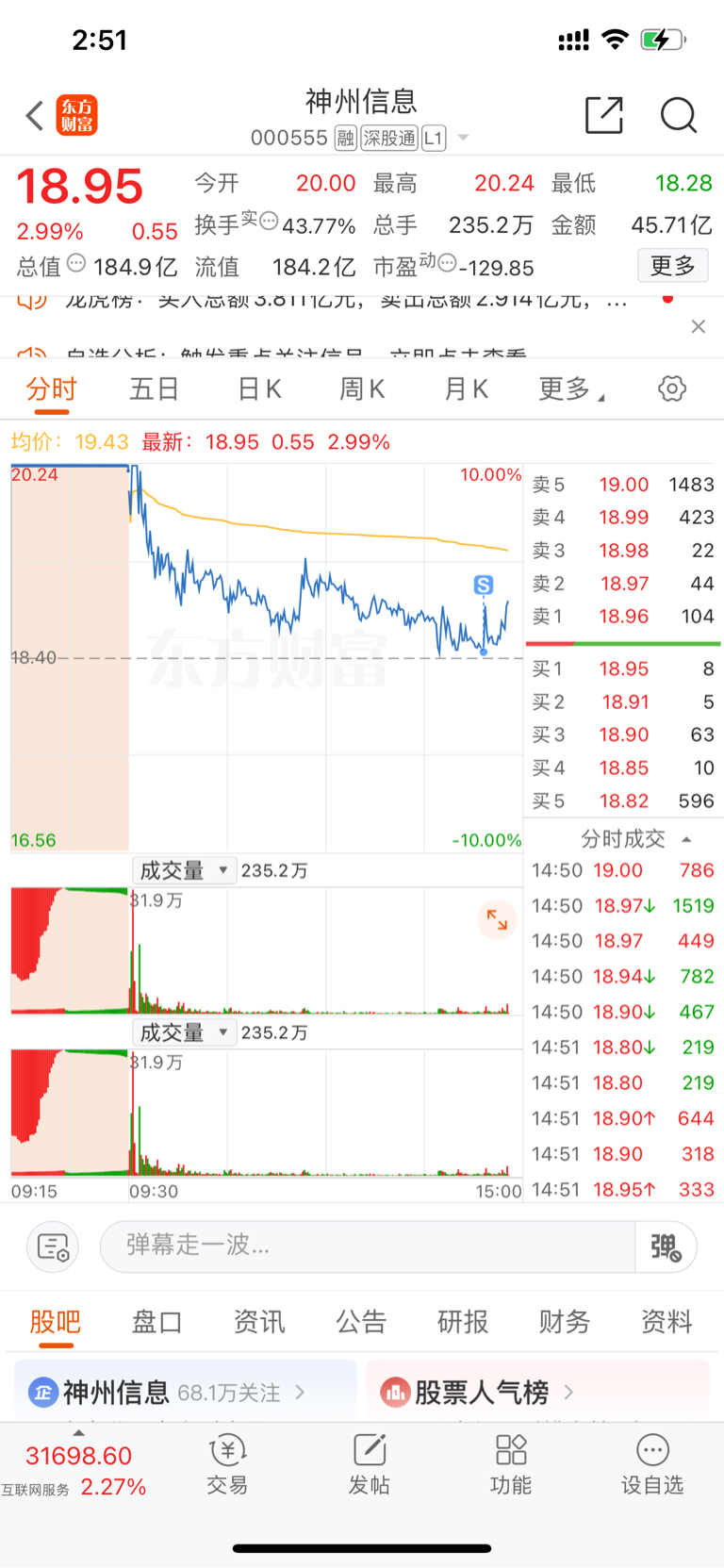 $神州信息(SZ000555)$ 要杀就杀要涨就涨