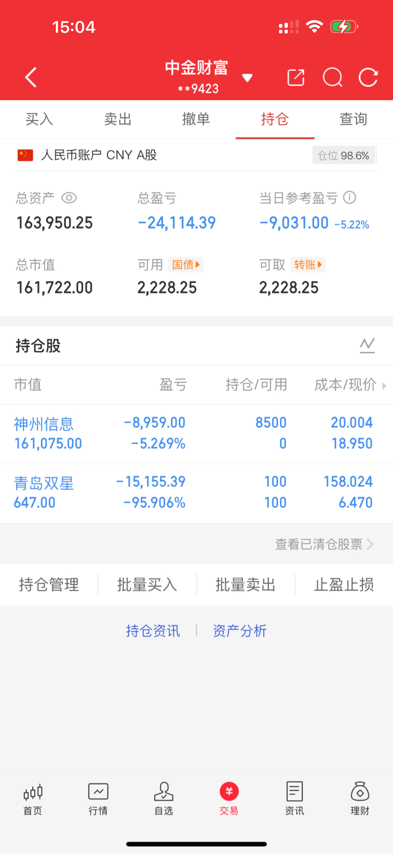 五万实盘的第103天(10月31日),不到五百万,不停更。记录个人成长,验证个人实力,欢迎打假,绝对实盘。目前163950元。开盘进了$神州信息(SZ000555)$ 。没有封住涨停板,当天亏五点多。现在连板行情太难做了。#复盘记录# #实盘记录# #强势机会# #收盘点评# #投资干货#