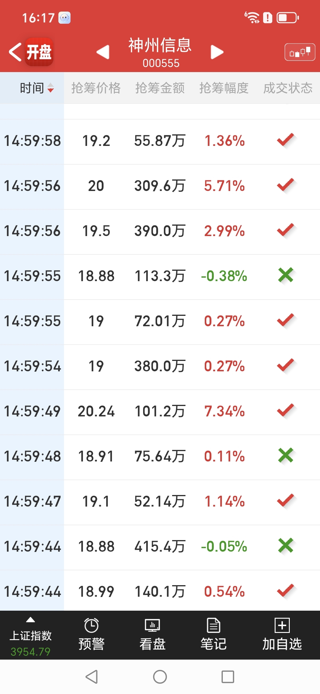 尾盘竞价共有1600万价格挂低了没有成交,周一会给你们抢筹的机会滴。神州尾盘抢筹