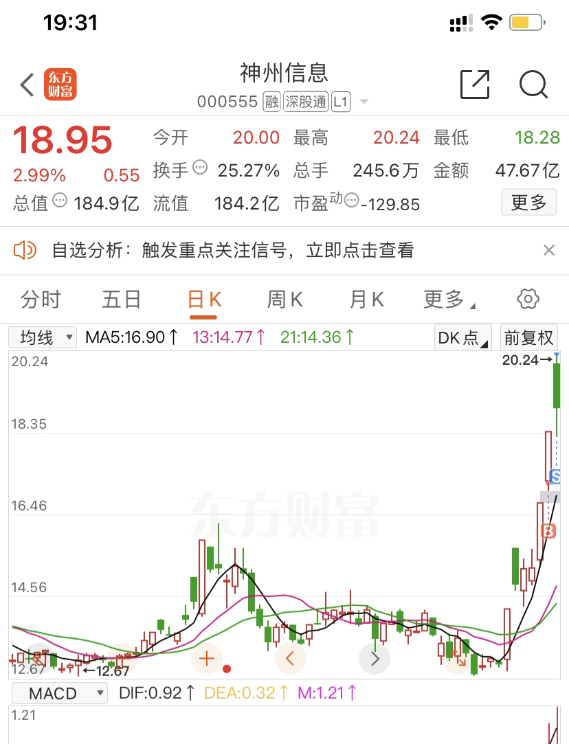 $神州信息(SZ000555)$ 早上本来打算加仓猛干的,一忙忘记了,幸亏忘记了