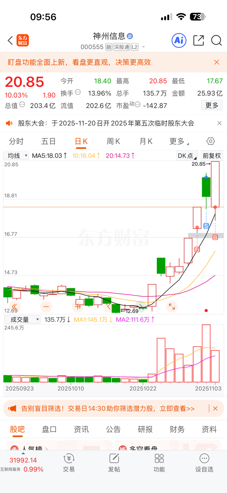 $神州信息(SZ000555)$ 今天是板后 首阴 有人要关注我吗