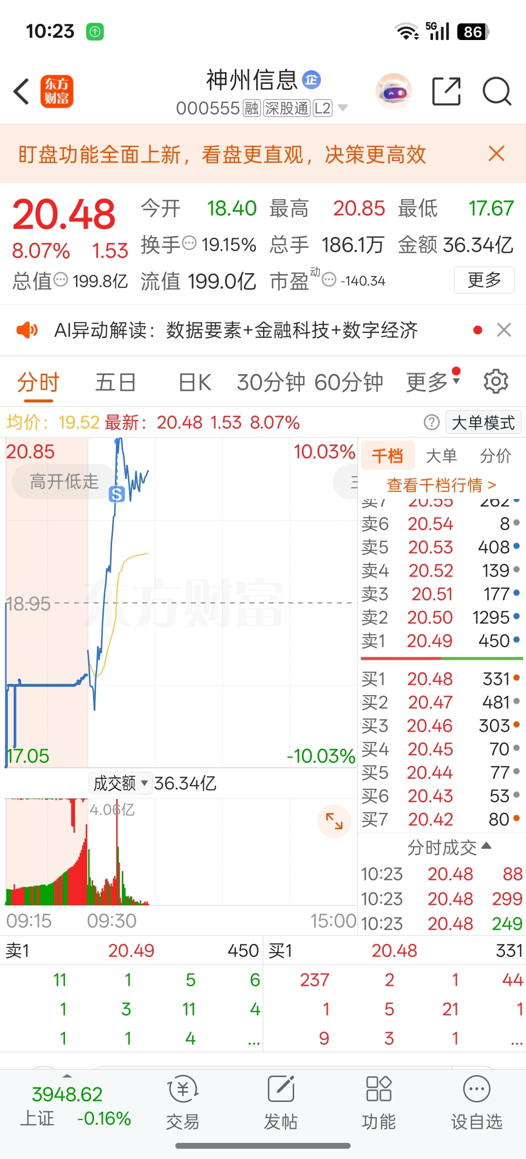 $神州信息(SZ000555)$ 一开盘吓死我了