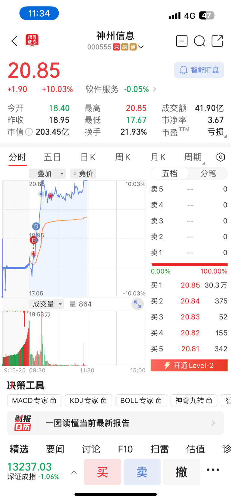 $神州信息(SZ000555)$ 今天我怕了,应该是我最后悔的决定