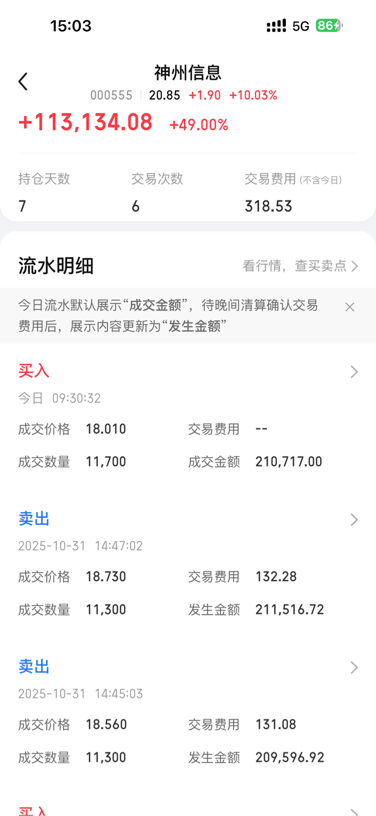 $神州信息(SZ000555)$ 虽然只抄了半仓回来,但是还是庆幸的,明天开始加速
