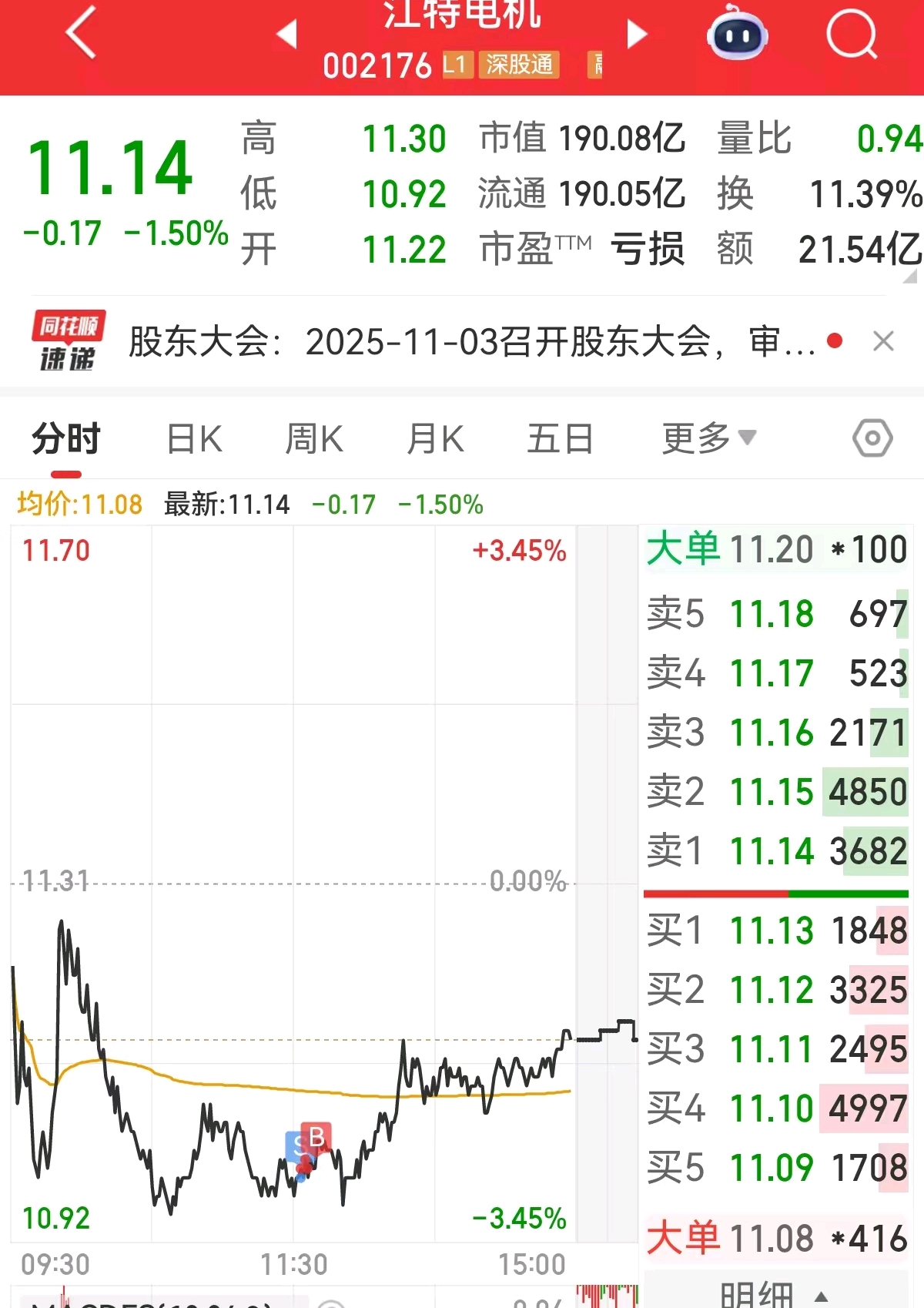 $江特电机(SZ002176)$ 回调缩量,补仓继续等待,只要不是放量大跌就可以!