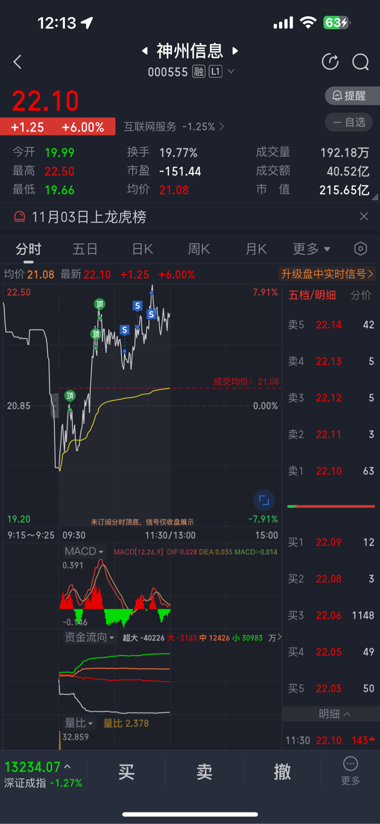 $神州信息(SZ000555)$ 我觉得大盘要调了,撤