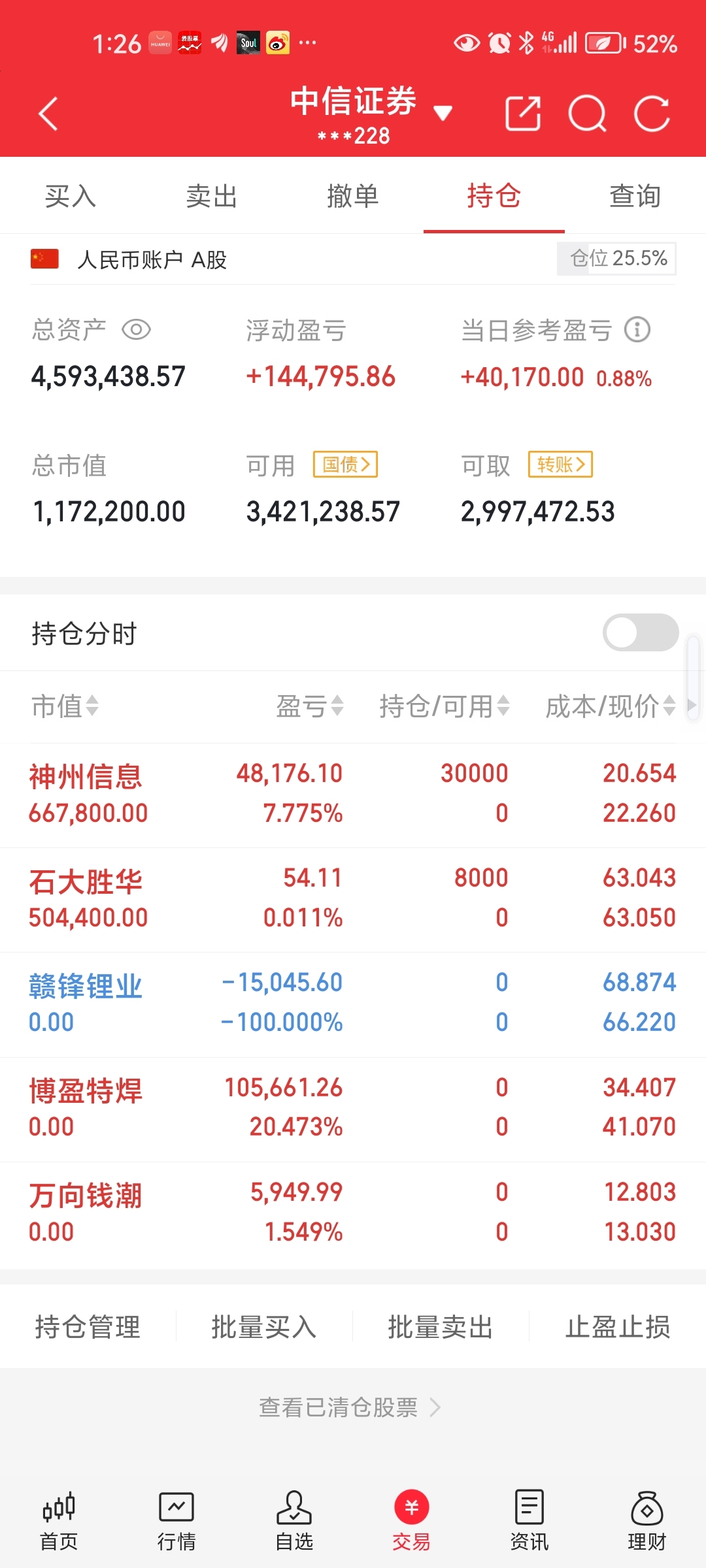 今日买进:$神州信息(SZ000555)$ $石大胜华(SH603026)$