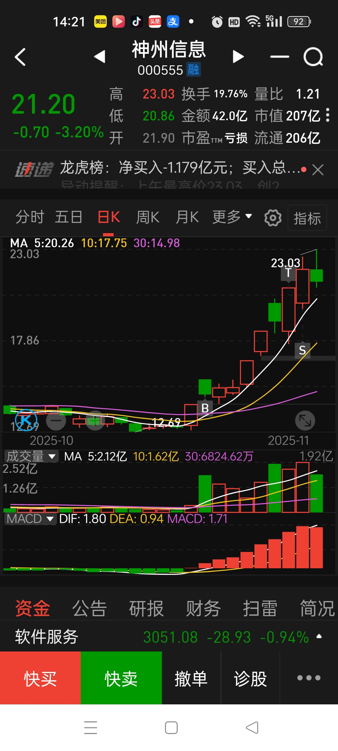 $神州信息(SZ000555)$ 昨天我走了,大家注意风险