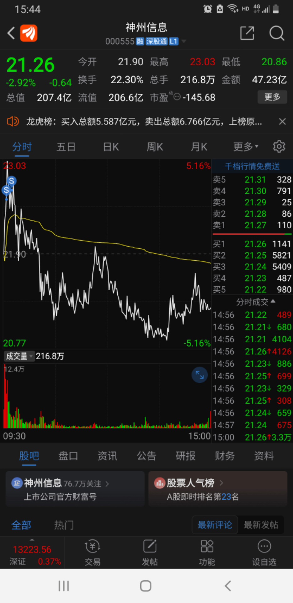 $神州信息(SZ000555)$ 明儿大概率跌停,谁来都不好使