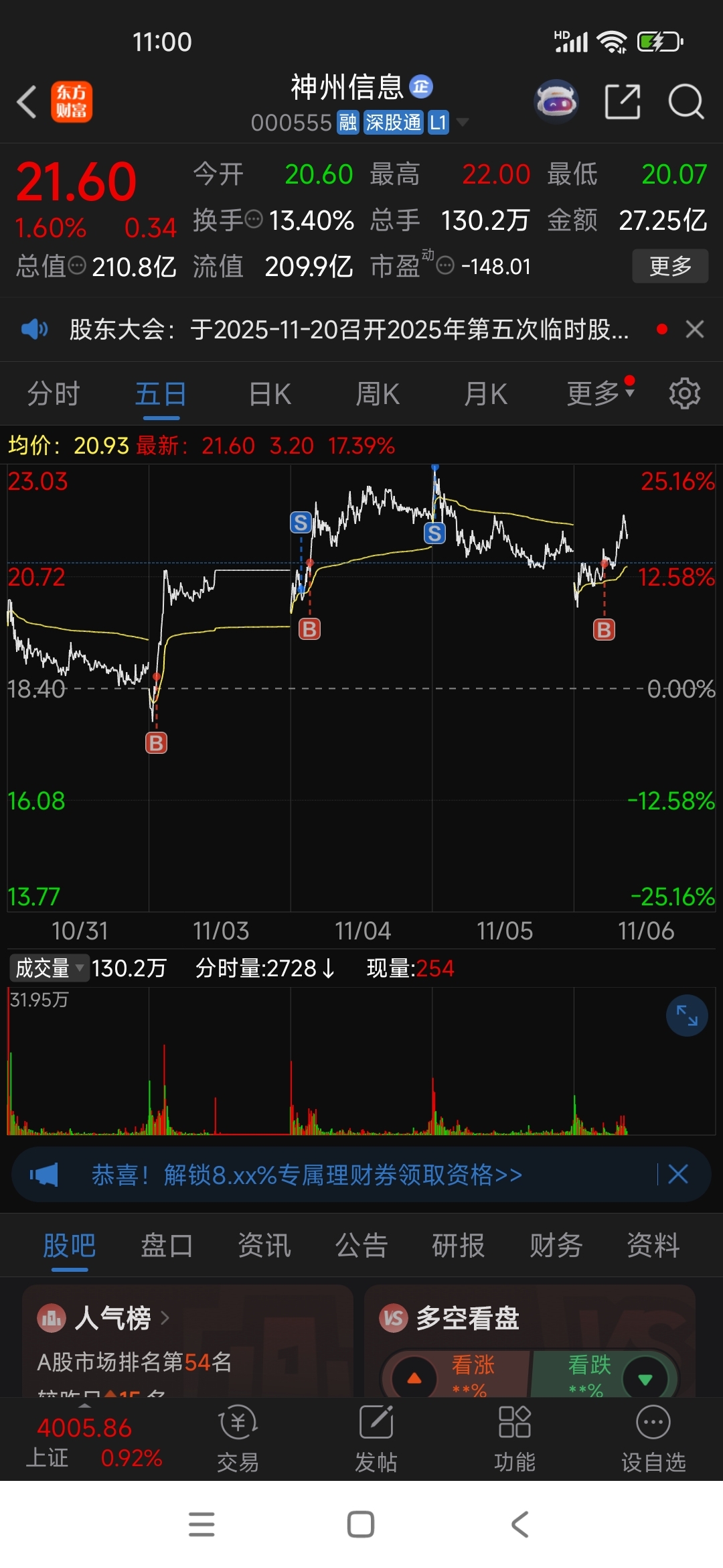 $神州信息(SZ000555)$ 别拉高,我又回来了