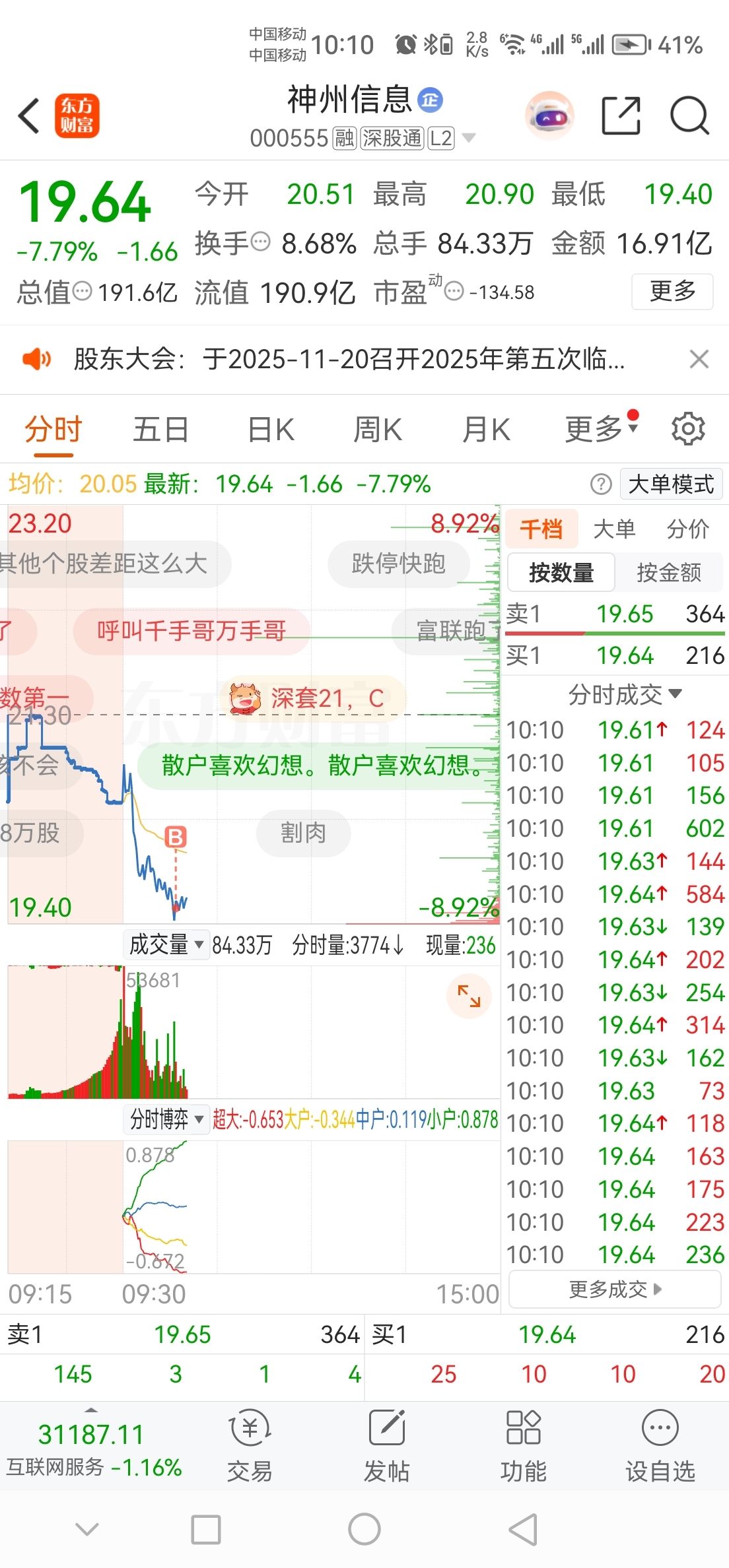 $神州信息(SZ000555)$ 下班了,不看了。接盘侠