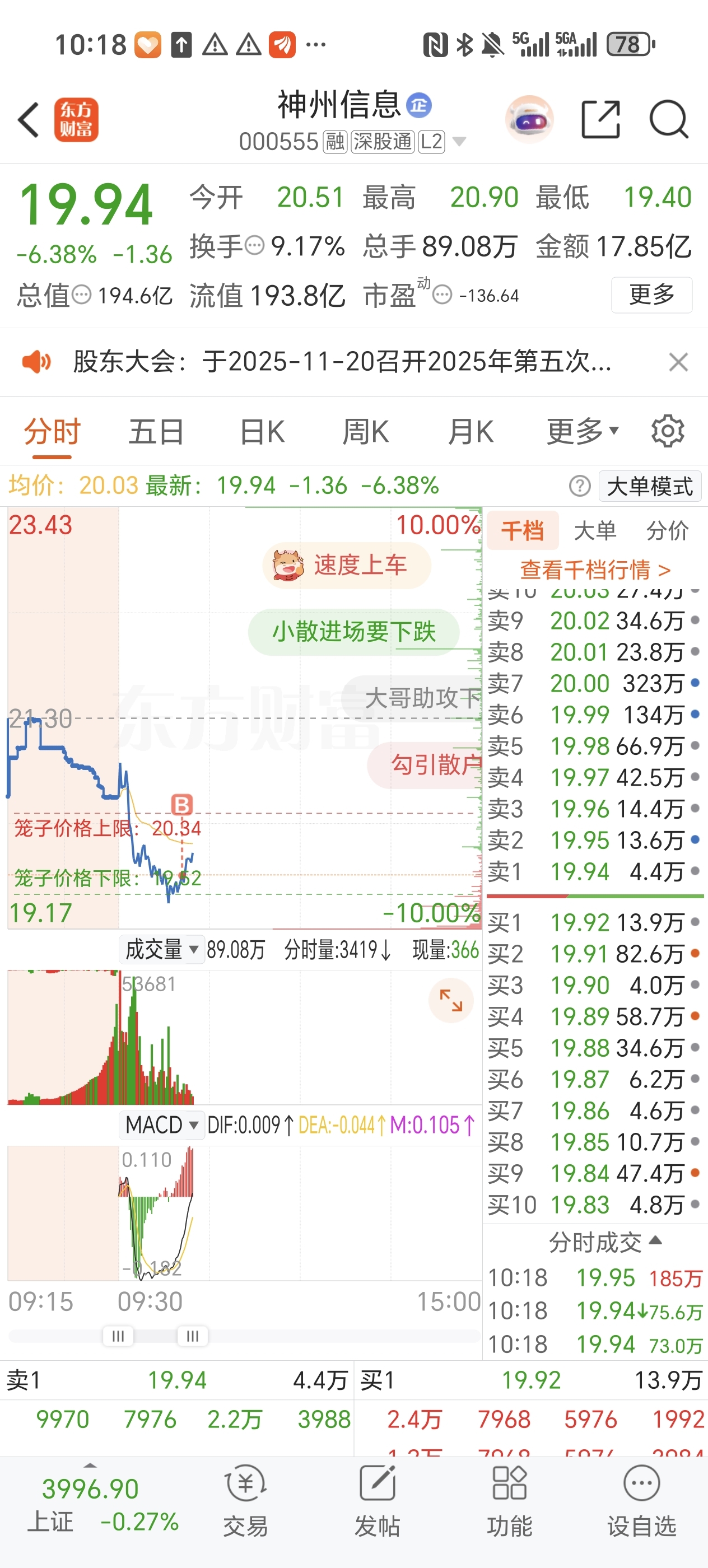 $神州信息(SZ000555)$ 恐慌杀出来了,买点