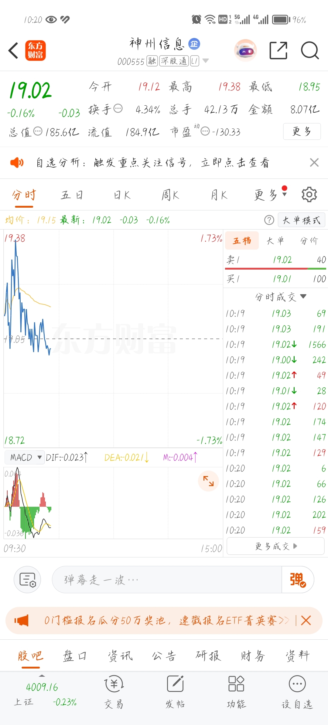 $神州信息(SZ000555)$ 20我就不想了!你能不能控制在19,别去找18!喔塌嘛