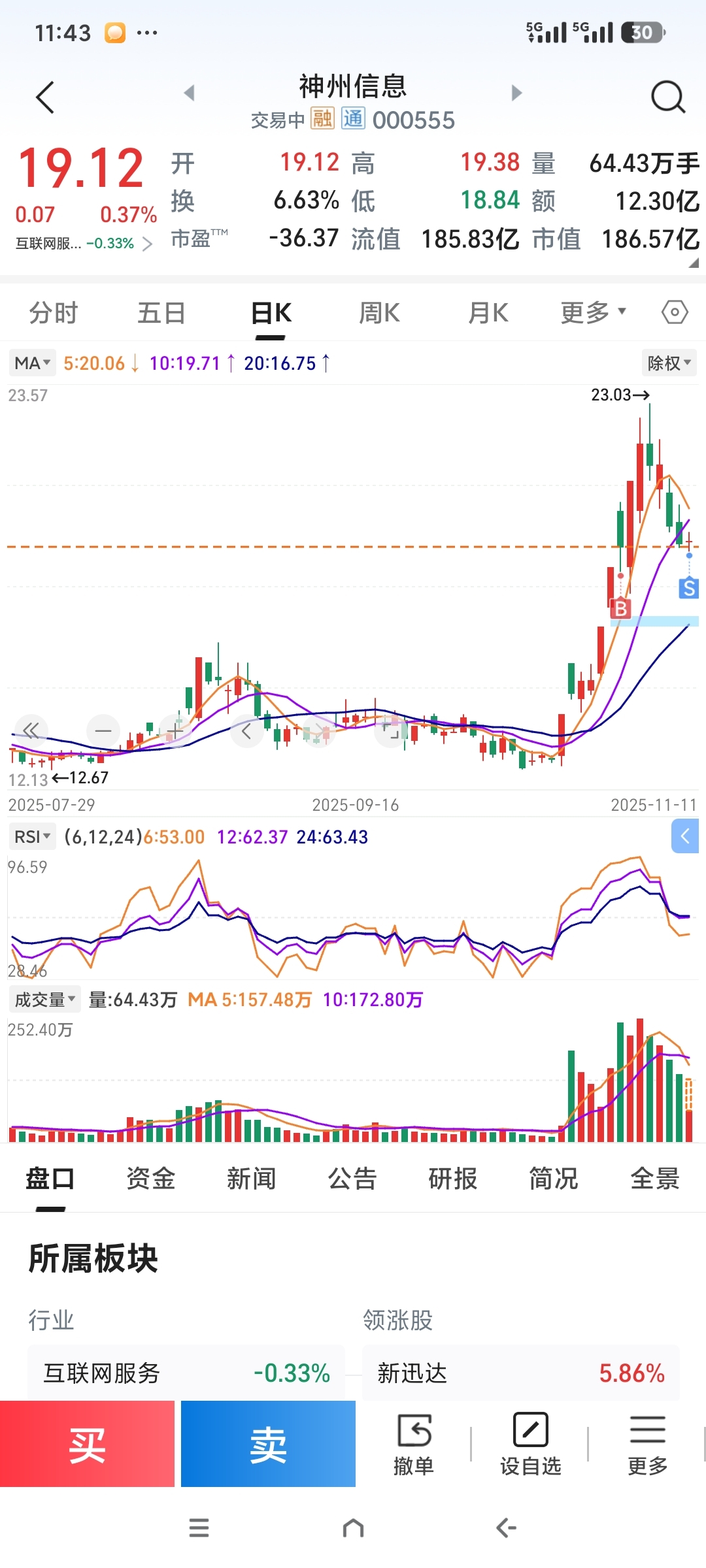 $神州信息(SZ000555)$ 我就妥妥韭菜啊,买进来吃15点没走,又送回去了,纯白玩