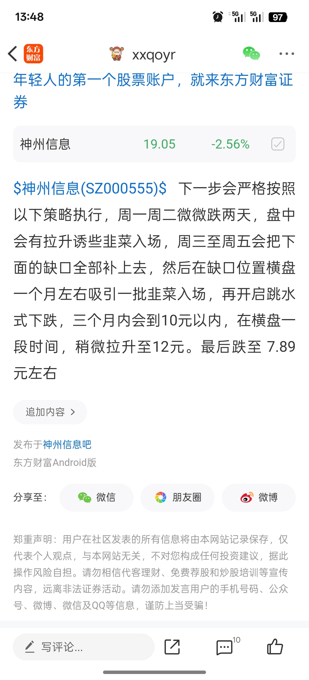 温馨提示: 1.根据《证券法》规定,禁止编造、传播虚假信息或者误导性信息,扰乱证券市场;2.用户在本社区发表的所有资料、言论等仅代表个人观点,与本网站立场无关,不对您构成任何投资建议。用户应基于自己的独立判断,自行决定证券投资并承担相应风险。《东方财富社区管理规定》