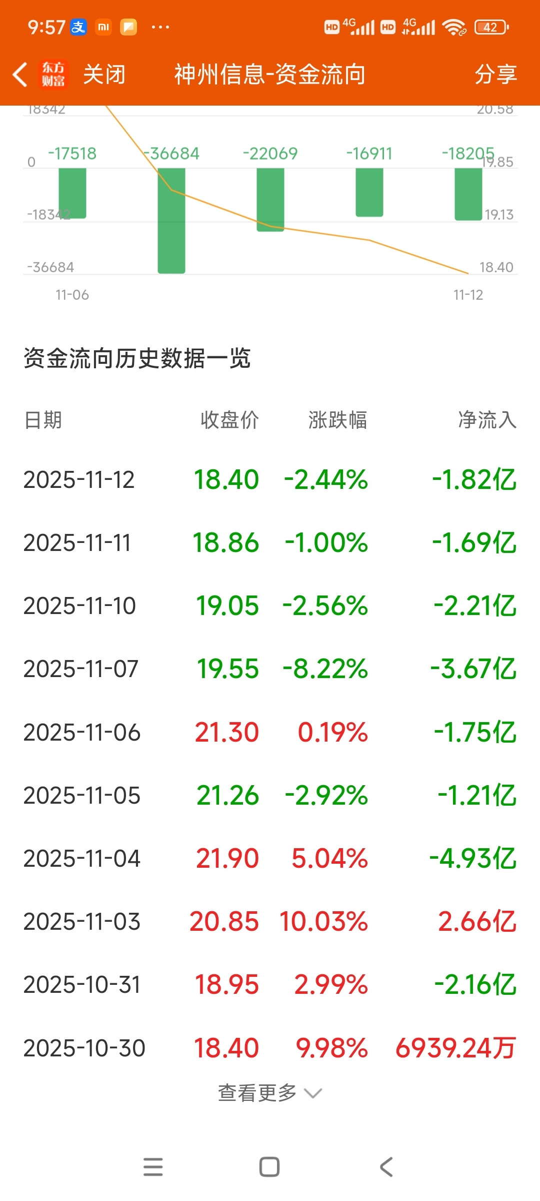 $神州信息(SZ000555)$ 7天跑掉多少。包工头