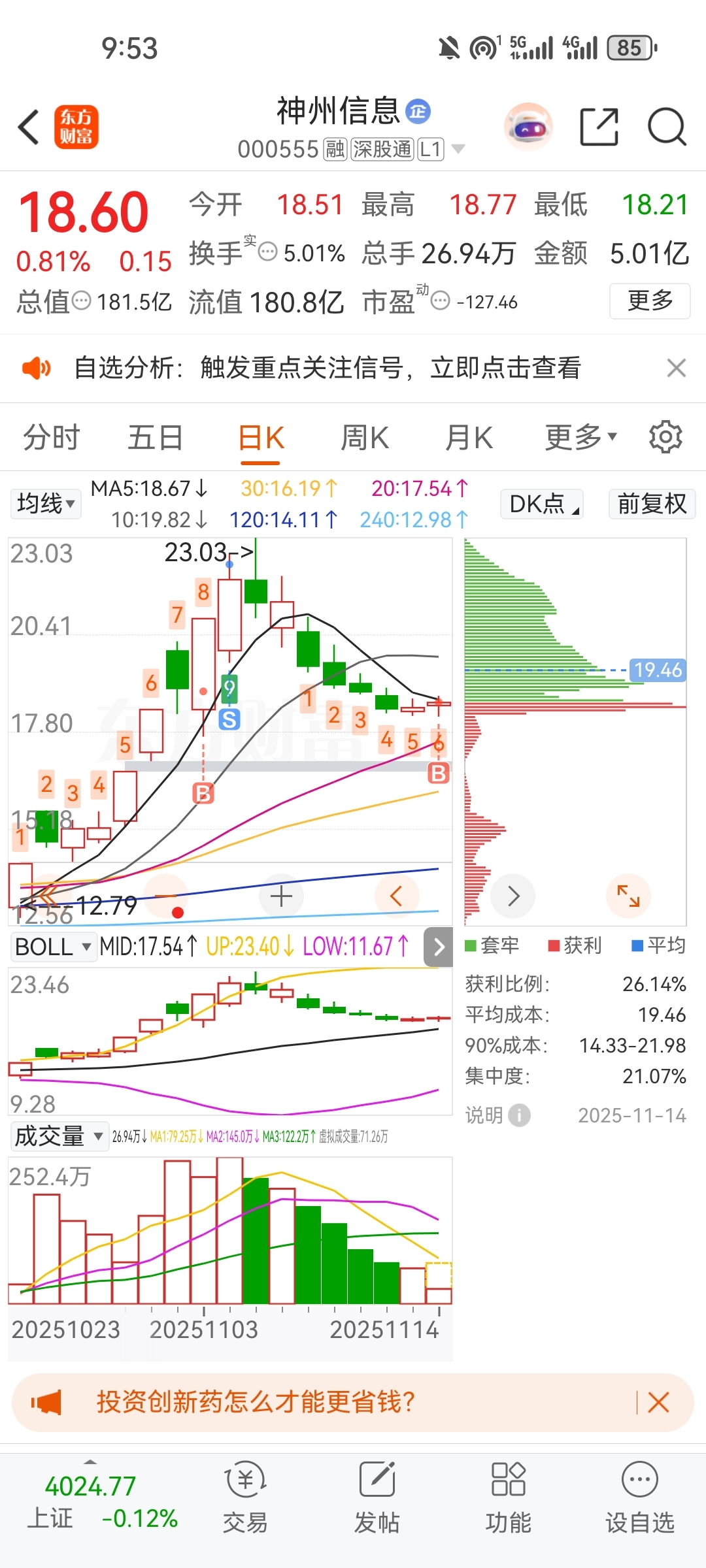 $神州信息(SZ000555)$ 建仓,反弹即将开始
